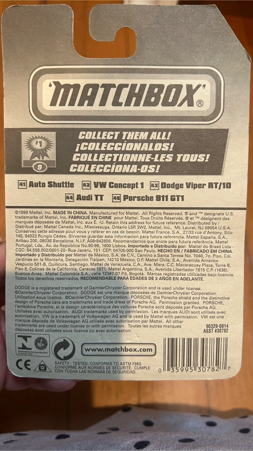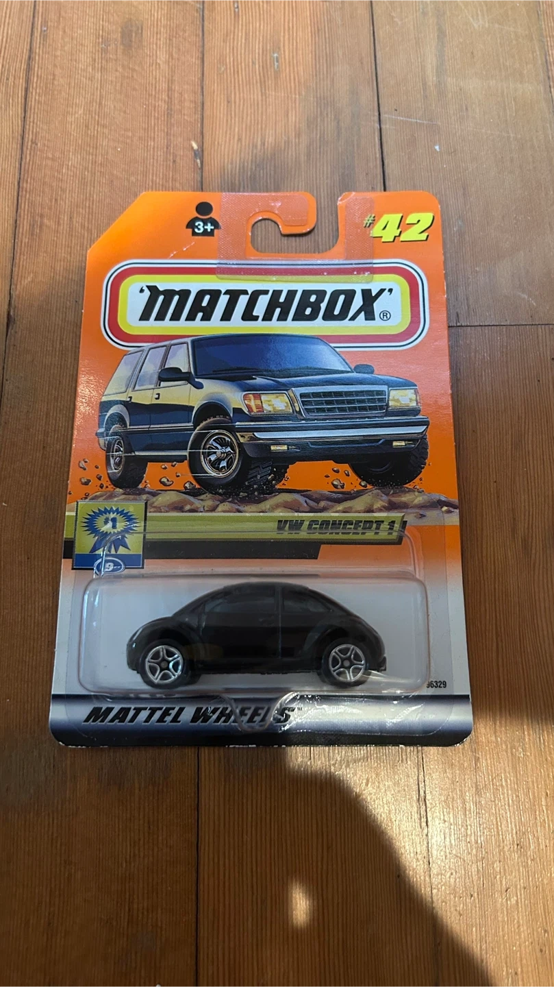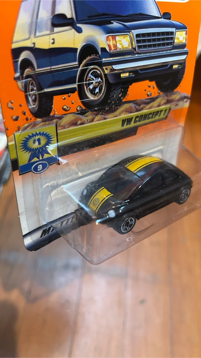 Factory sealed in original packaging. Black VW Concept 1 with yellow stripe detailing and a clean late-90s / early-2000s Matchbox look. A nice collectible for Matchbox fans, VW collectors, or anyone who enjoys sealed carded models.