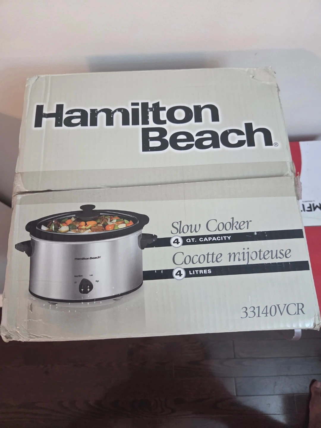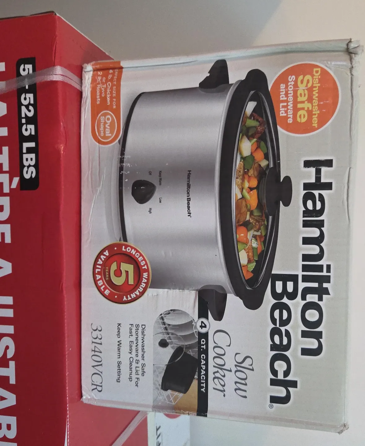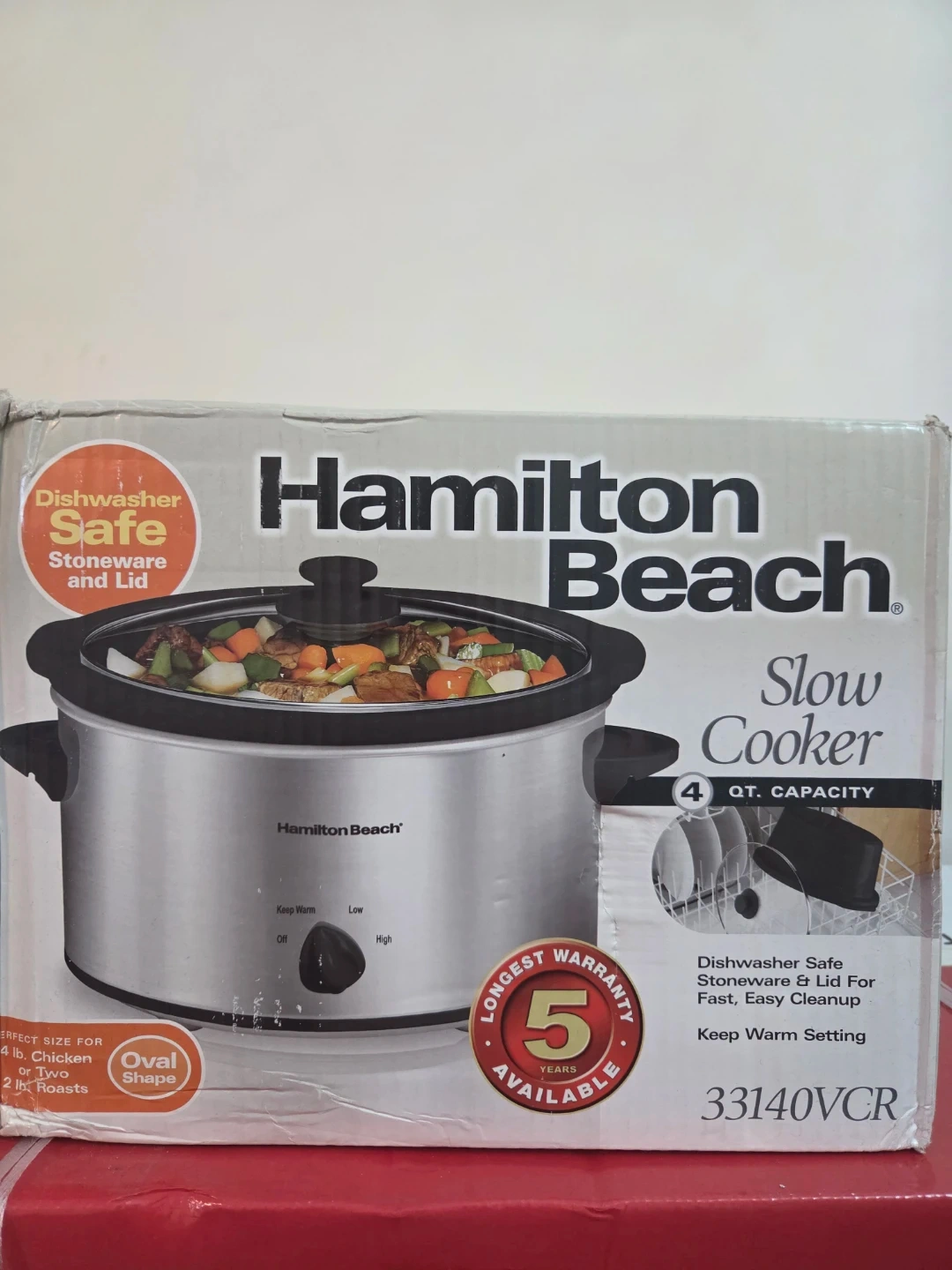 Hamilton Beach 4 quart capacity slow cooker. It's dishwasher safe stoneware and lid for easy cleanup. The cooker includes keep warm setting.