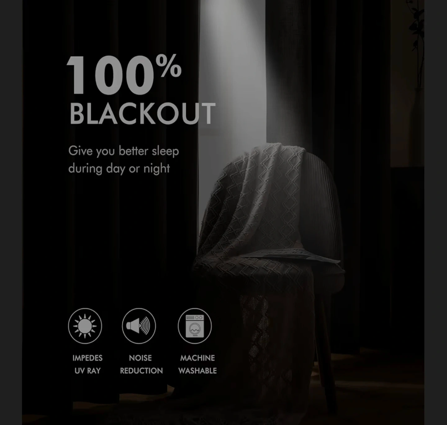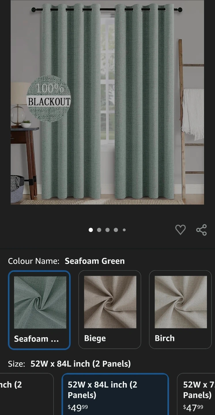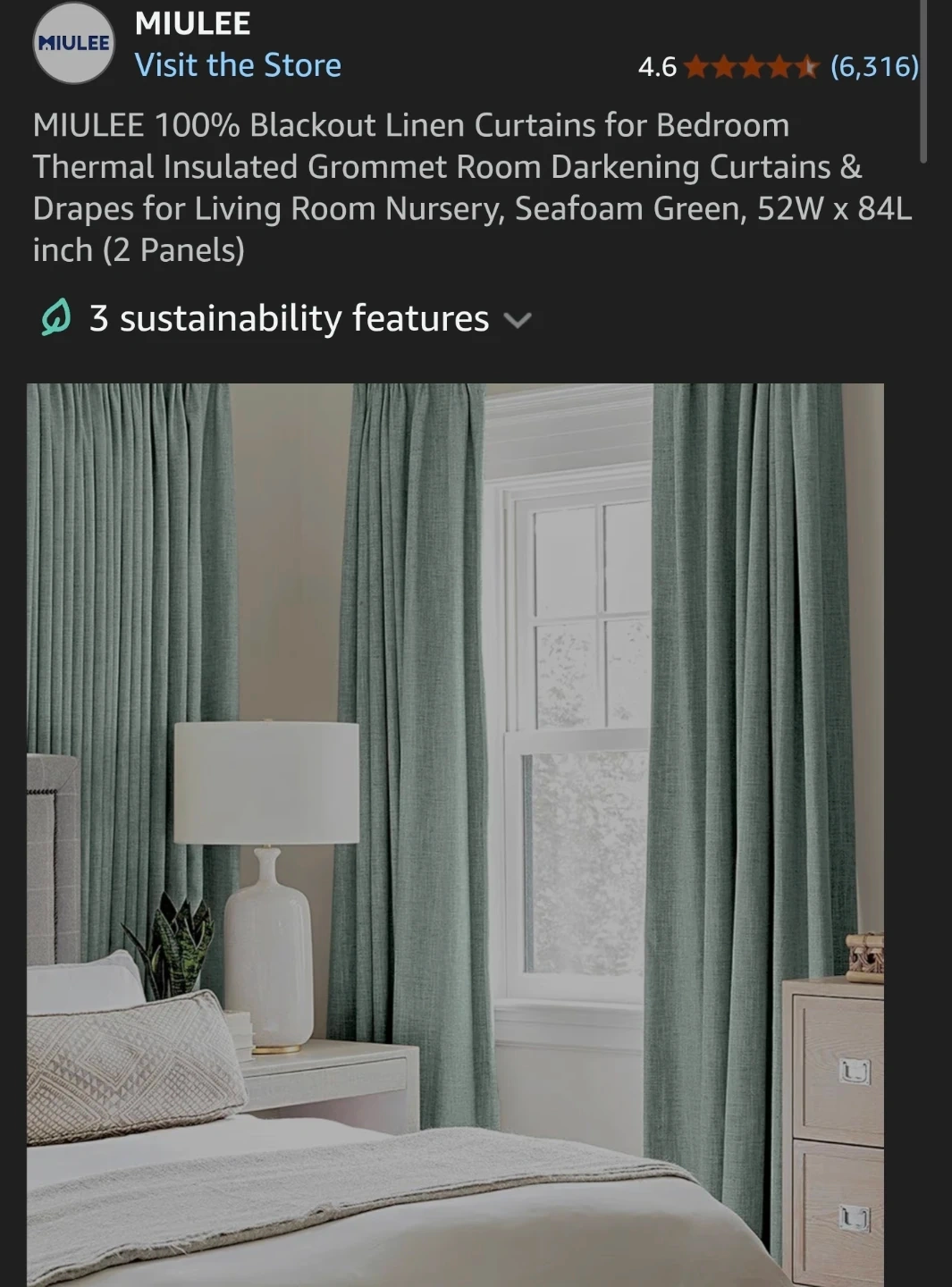 These MIULEE curtains are 100% blackout and made from faux linen fabric. Each panel has 8 silver grommets with an interior diameter of 1.6 inches. They help impede UV rays and reduce noise.