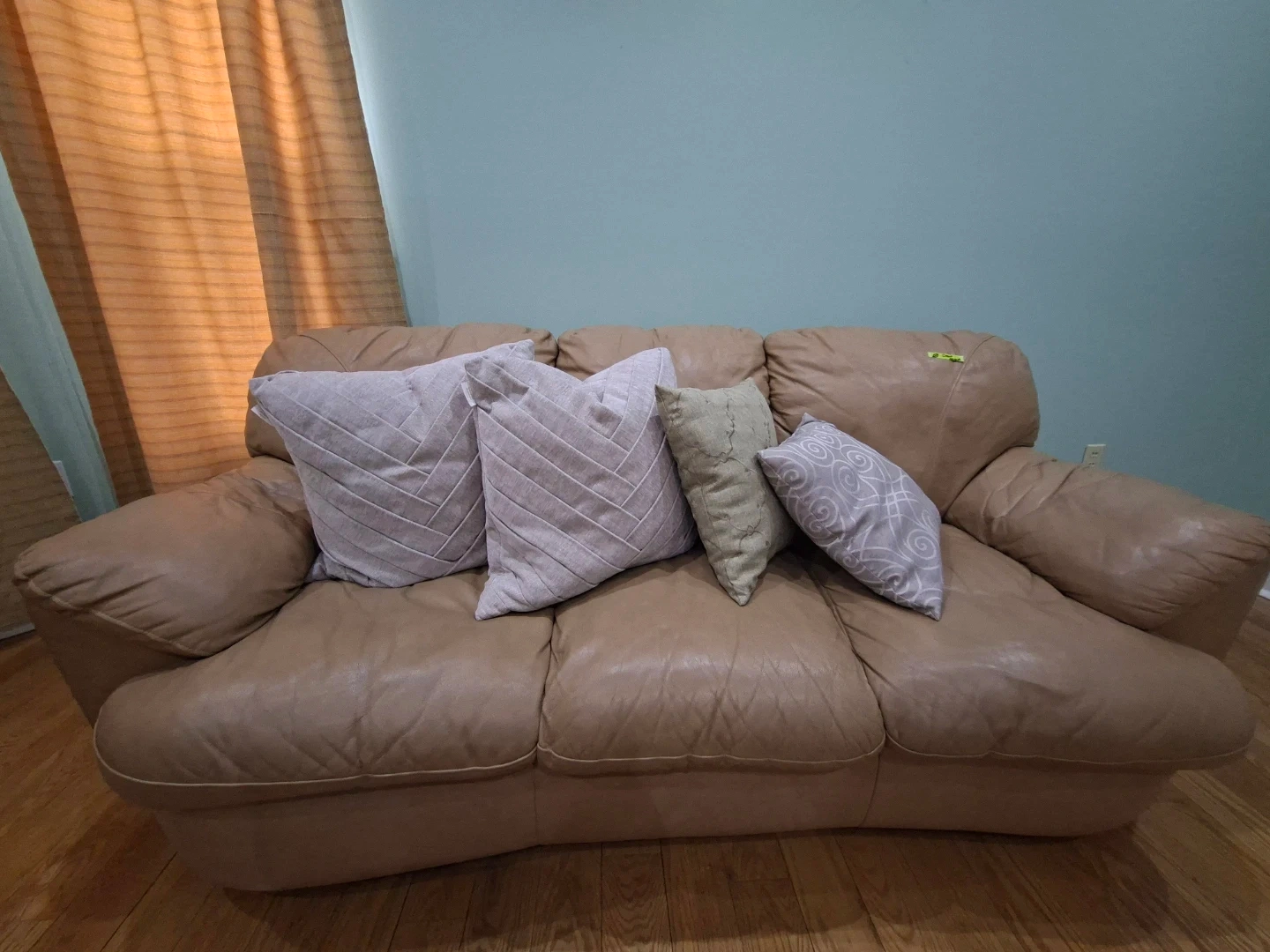 Tan Leather Sofa with Pillows