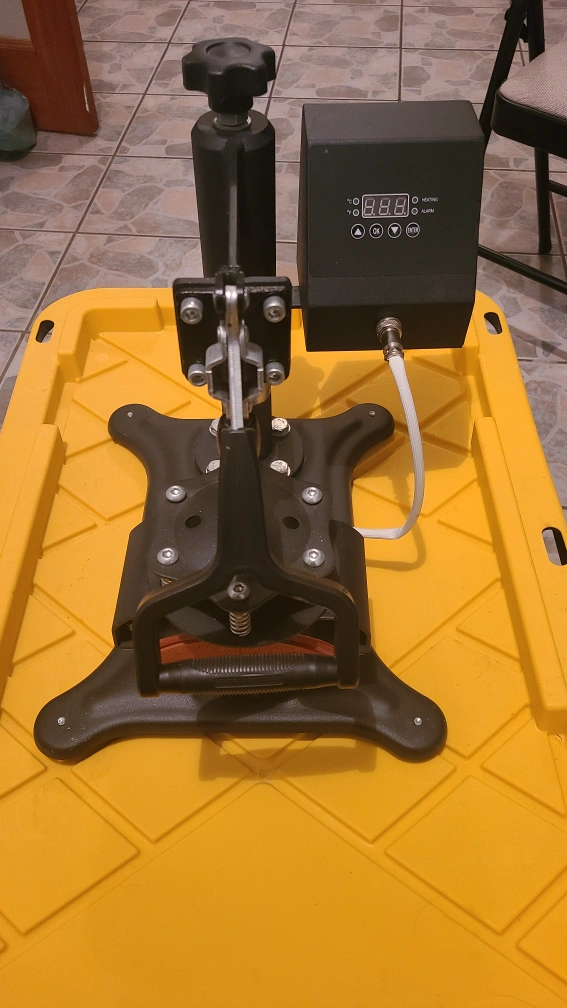 6-in-1 heat press machine. Includes digital temperature control. Great for t-shirts, mugs, and more. Bonus Transourdream Dark 3.0 transfer paper included. Used but in good condition.