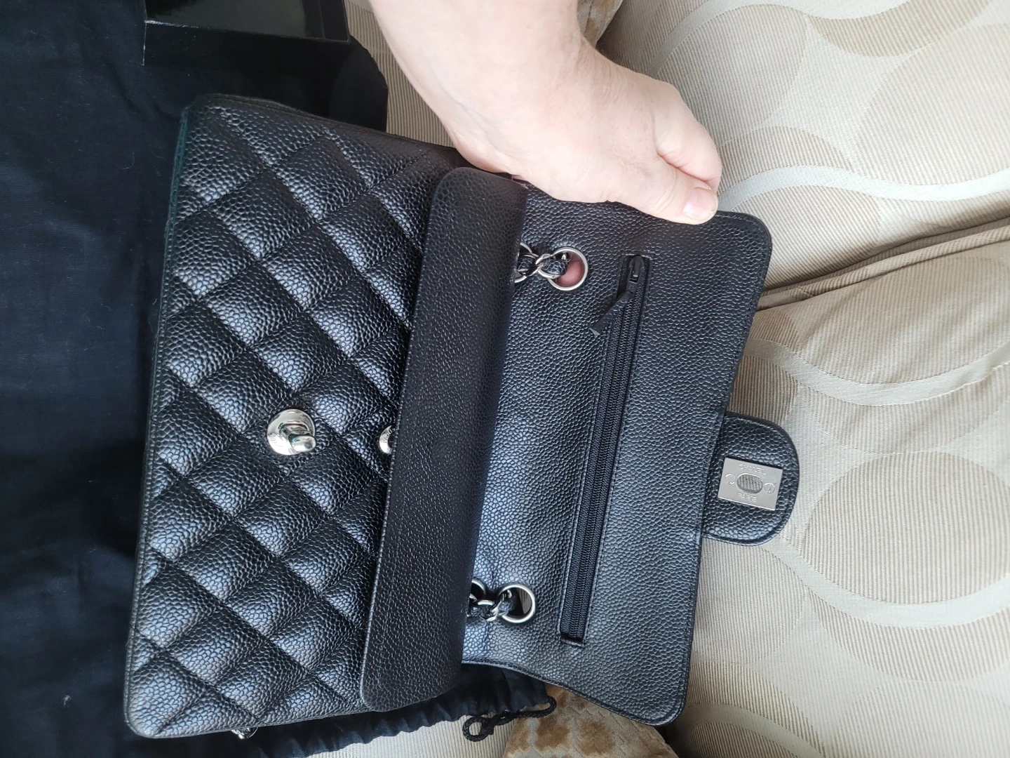 It features silver-tone hardware, chain strap and iconic interlocking CC turn-lock closure. Comes with original dust bag, sorry no card. Serial # intact