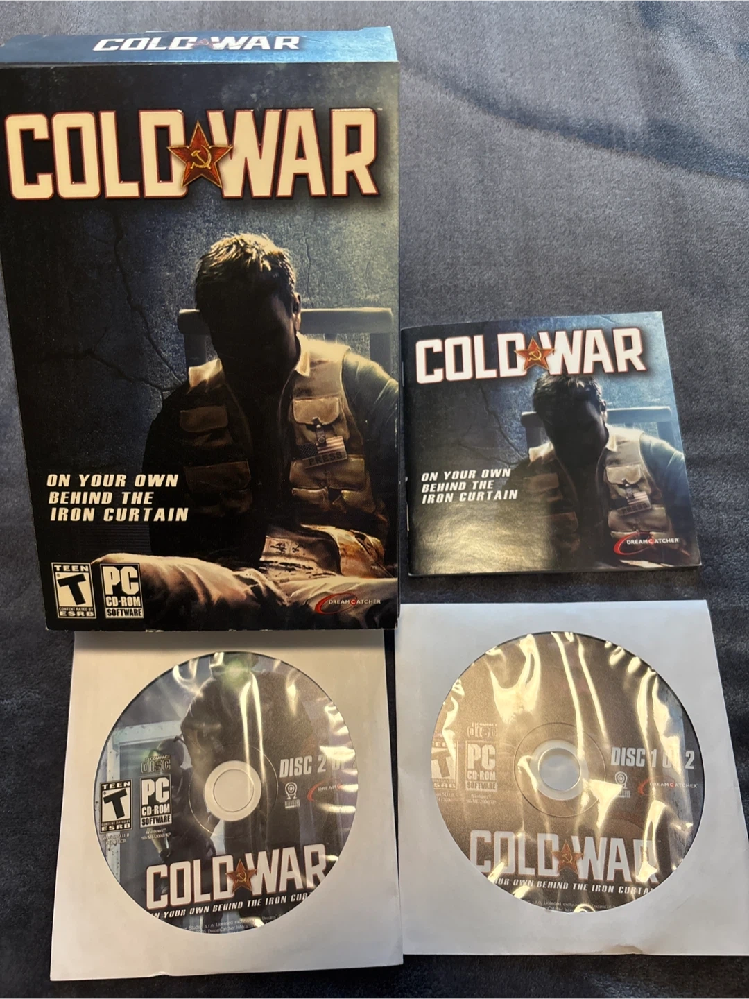 This PC CD-ROM game is titled "Cold War" and is rated Teen. It includes two discs and a manual. "On Your Own Behind The Iron Curtain."
