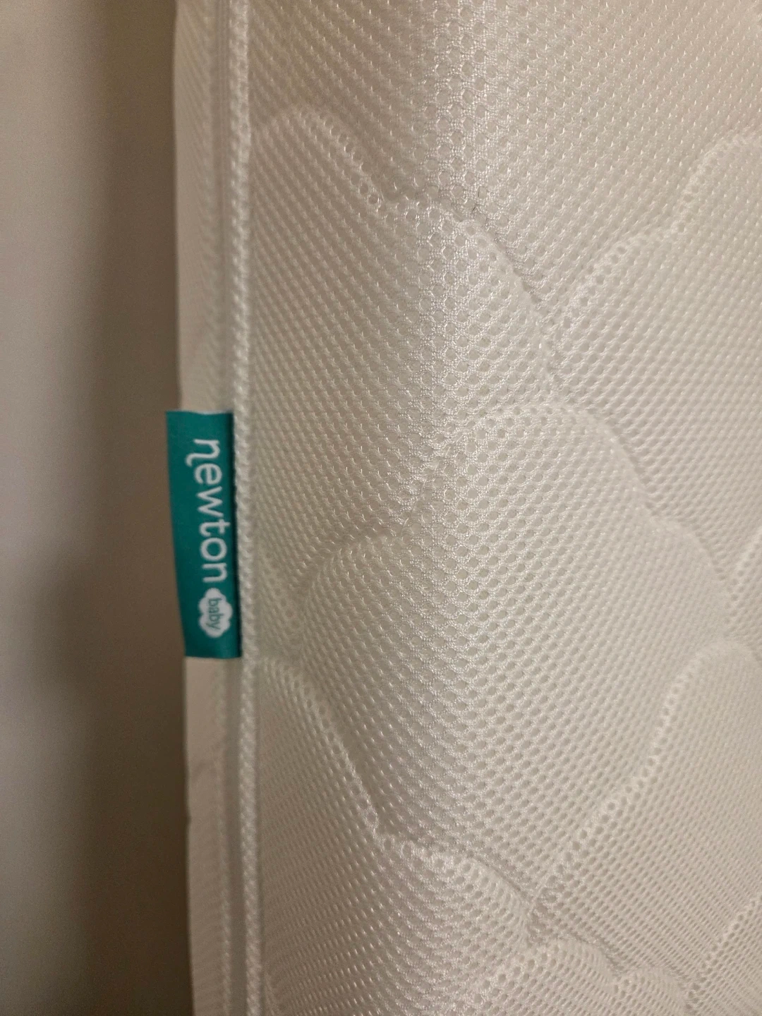 This Newton Baby crib mattress is white with a quilted pattern. It's made with breathable materials for comfort.