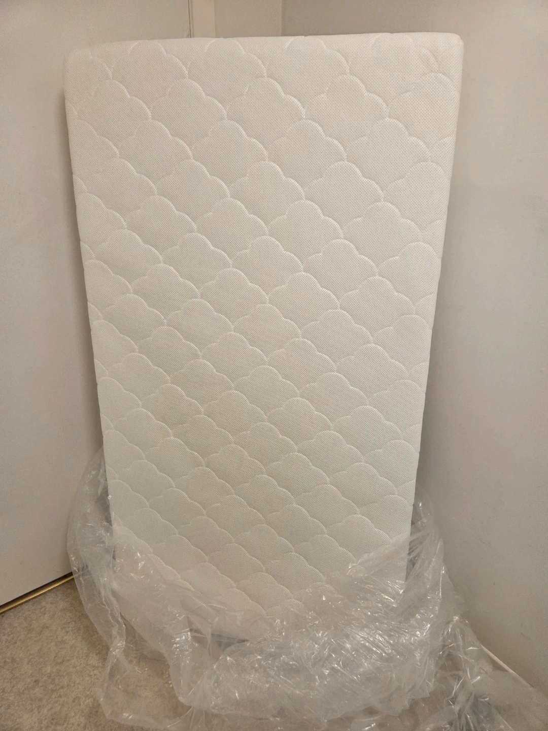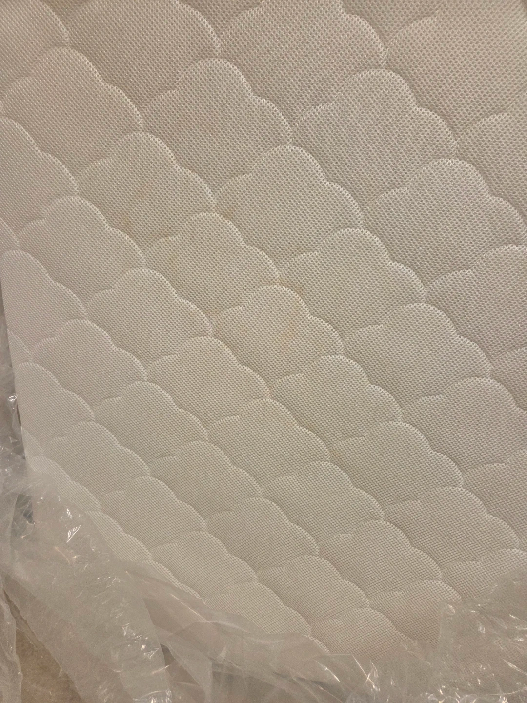 This Newton Baby crib mattress is white with a quilted pattern. It's made with breathable materials for comfort.
