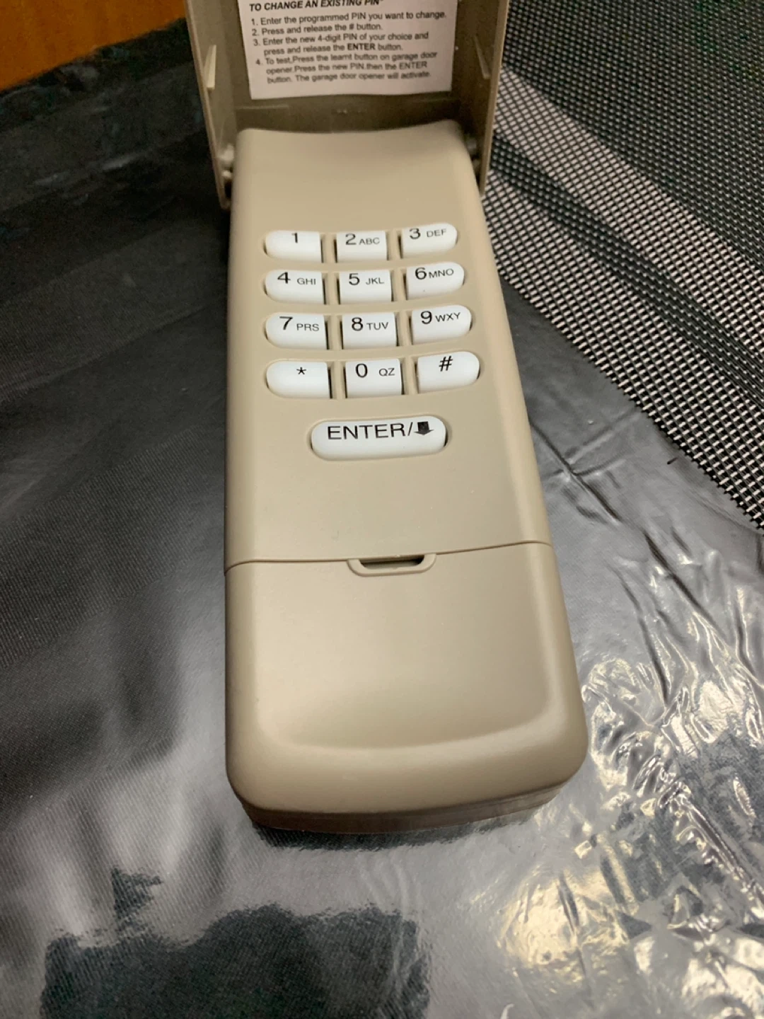 This is a universal wireless keypad for your garage door. It features an illuminated keypad for easy use and fast, simple setup. Strong encryption ensures security. Includes original box.