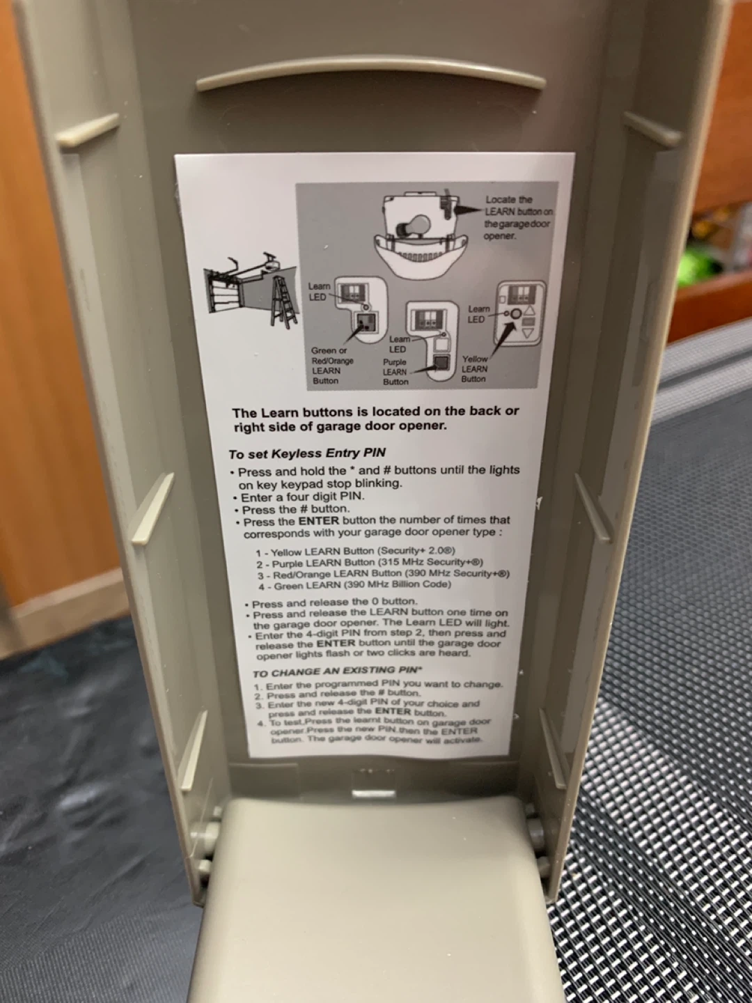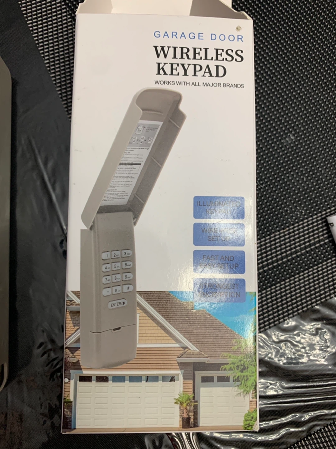 This is a universal wireless keypad for your garage door. It features an illuminated keypad for easy use and fast, simple setup. Strong encryption ensures security. Includes original box.