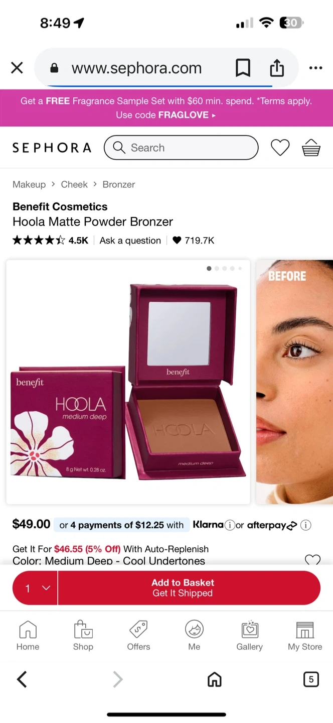New Benefit Cosmetics Hoola Matte Powder Bronzer in Medium Deep