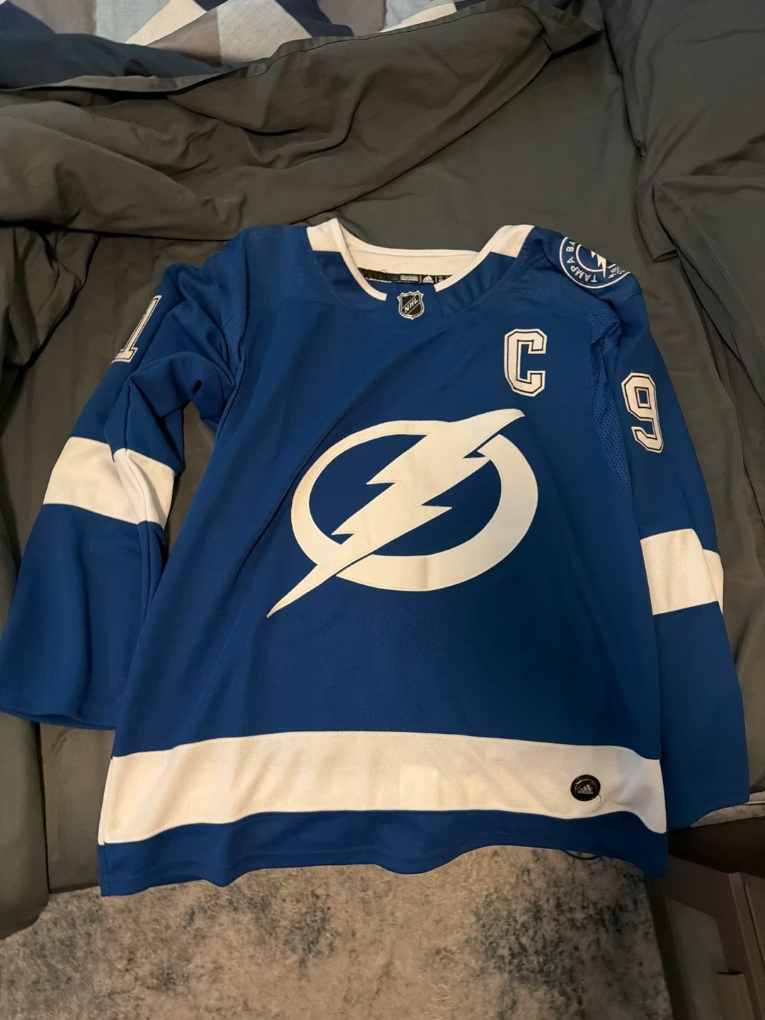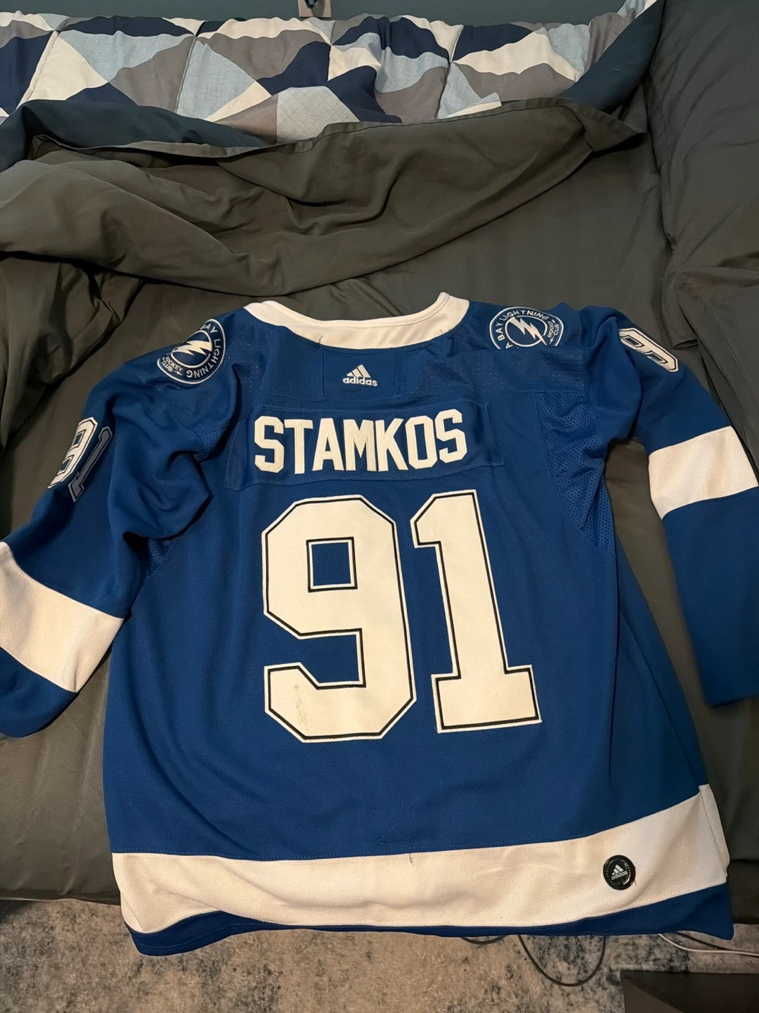 Authentic Adidas hockey jersey for the Tampa Bay Lightning, featuring Steven Stamkos's name and number 91. Made with Climalite technology for breathability. Size 52. Barley worn, great condition