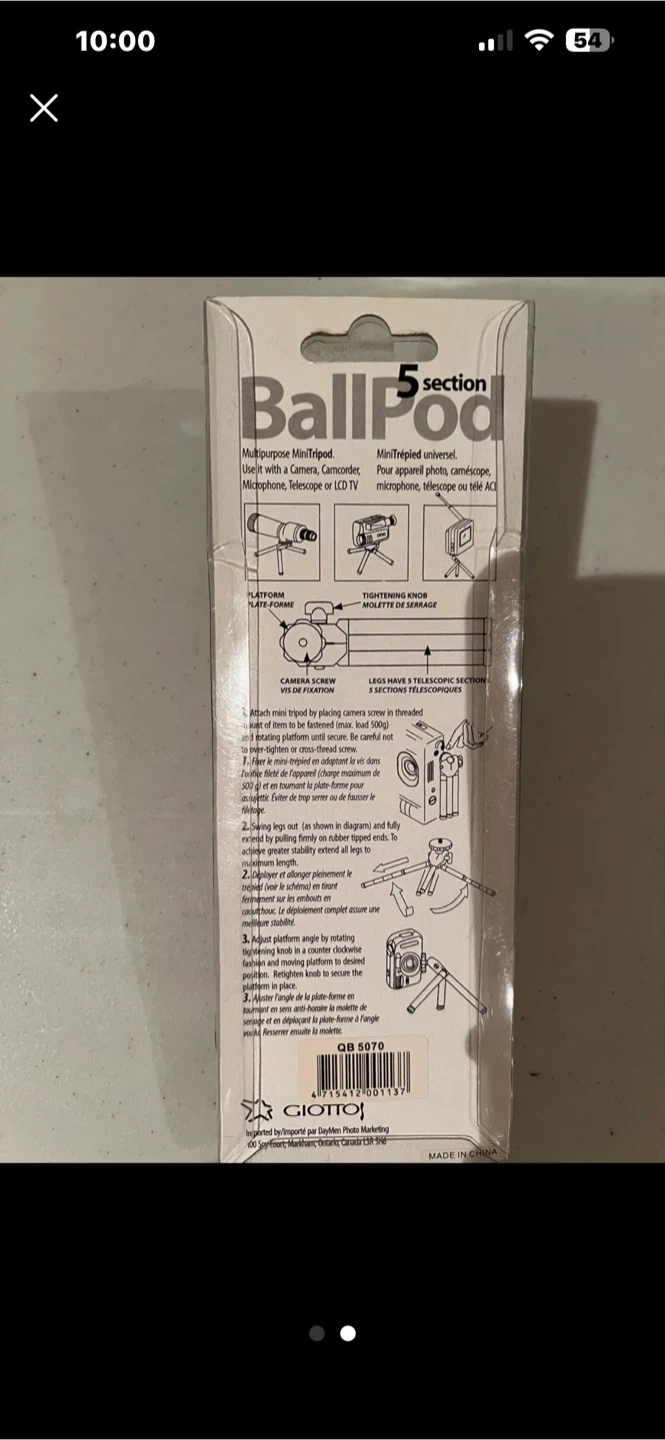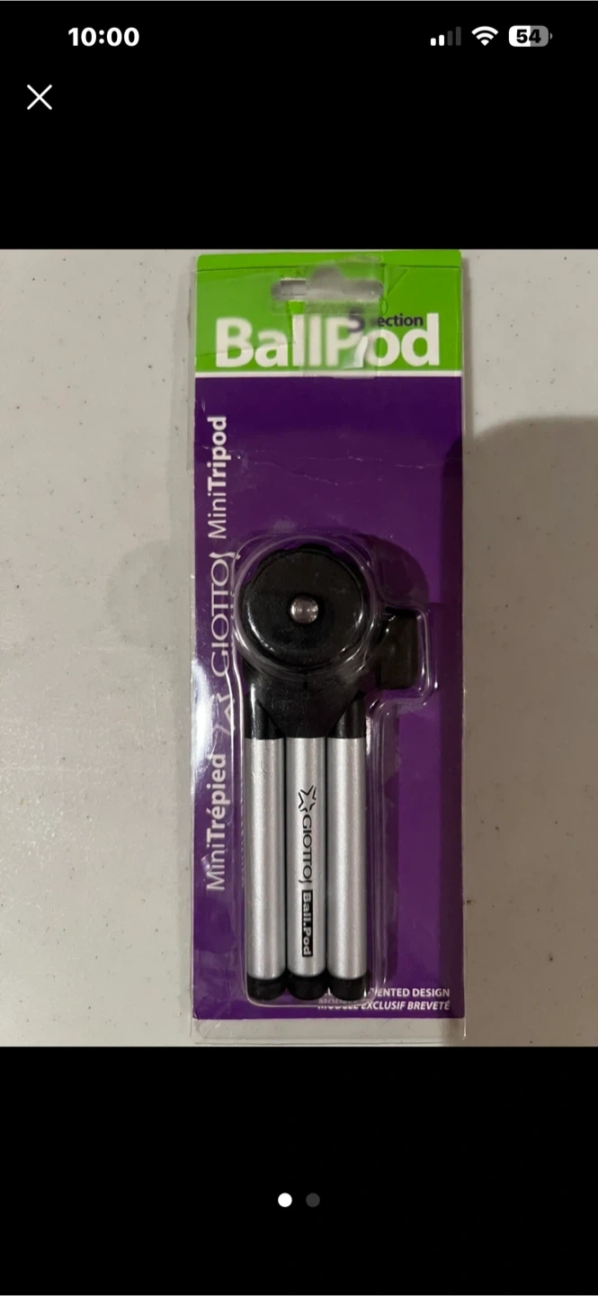 This is a Giotto BallPod 5 section mini tripod. It's designed for cameras, camcorders, microphones, or small TVs. Legs have 5 telescopic sections.