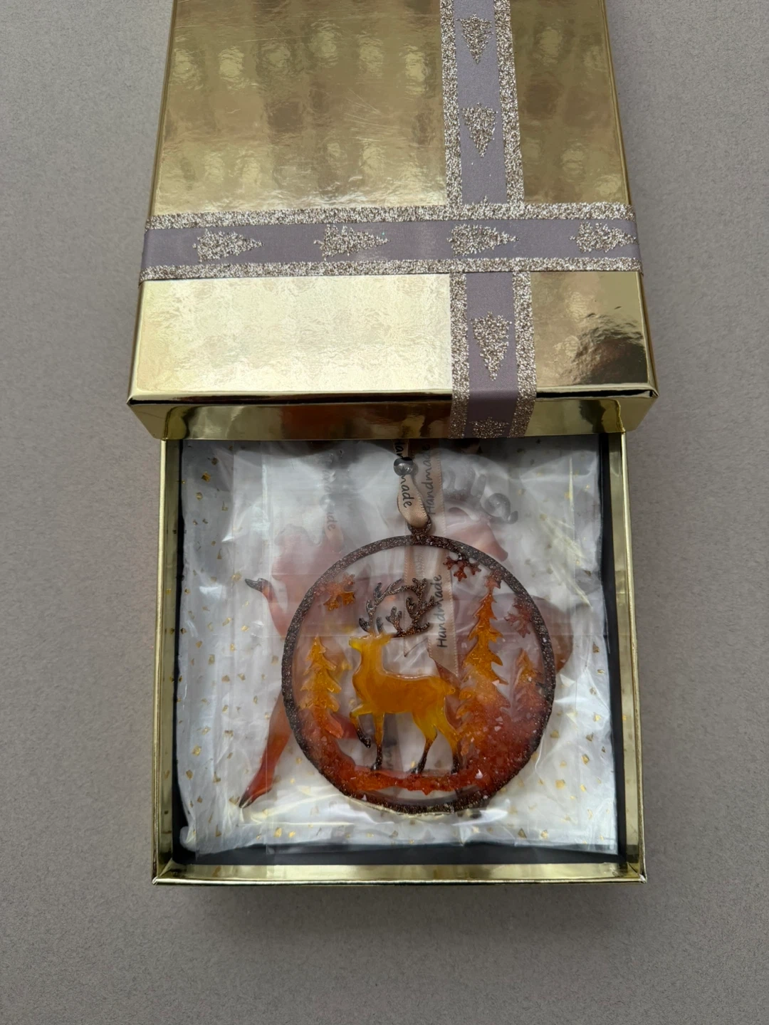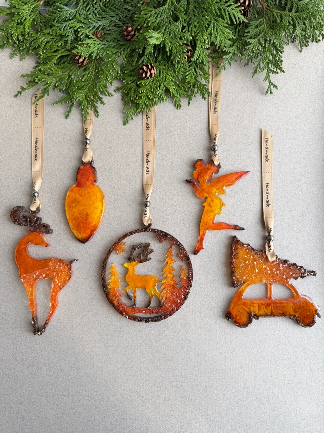 Add a touch of warmth and originality to your Christmas tree — or gift someone a truly unique set they won’t find anywhere else. I made these five ornaments by hand using epoxy resin, each with its own texture and character.
