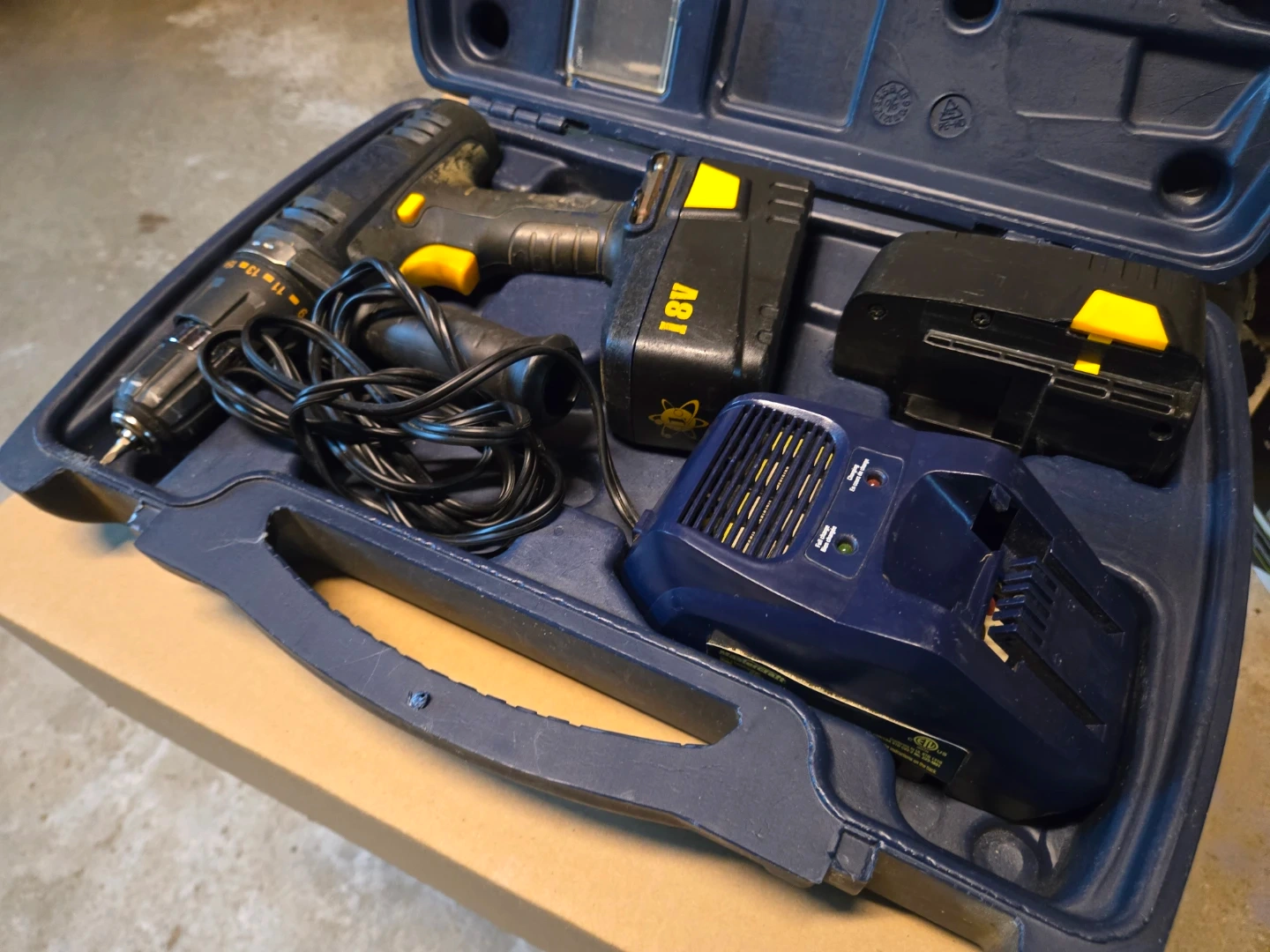 It's in the original case and includes the operating manual and several drill bits.