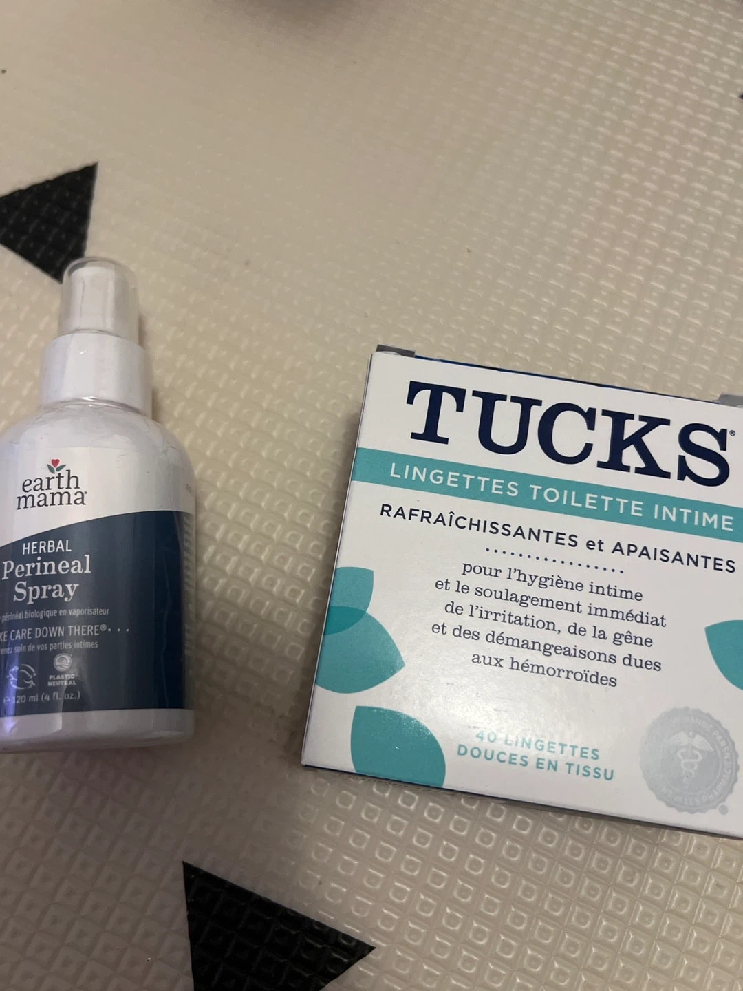 Selling a bottle of Earth Mama Herbal Perineal Spray (120 ml) along with a box of Tucks medicated wipes (40 count)