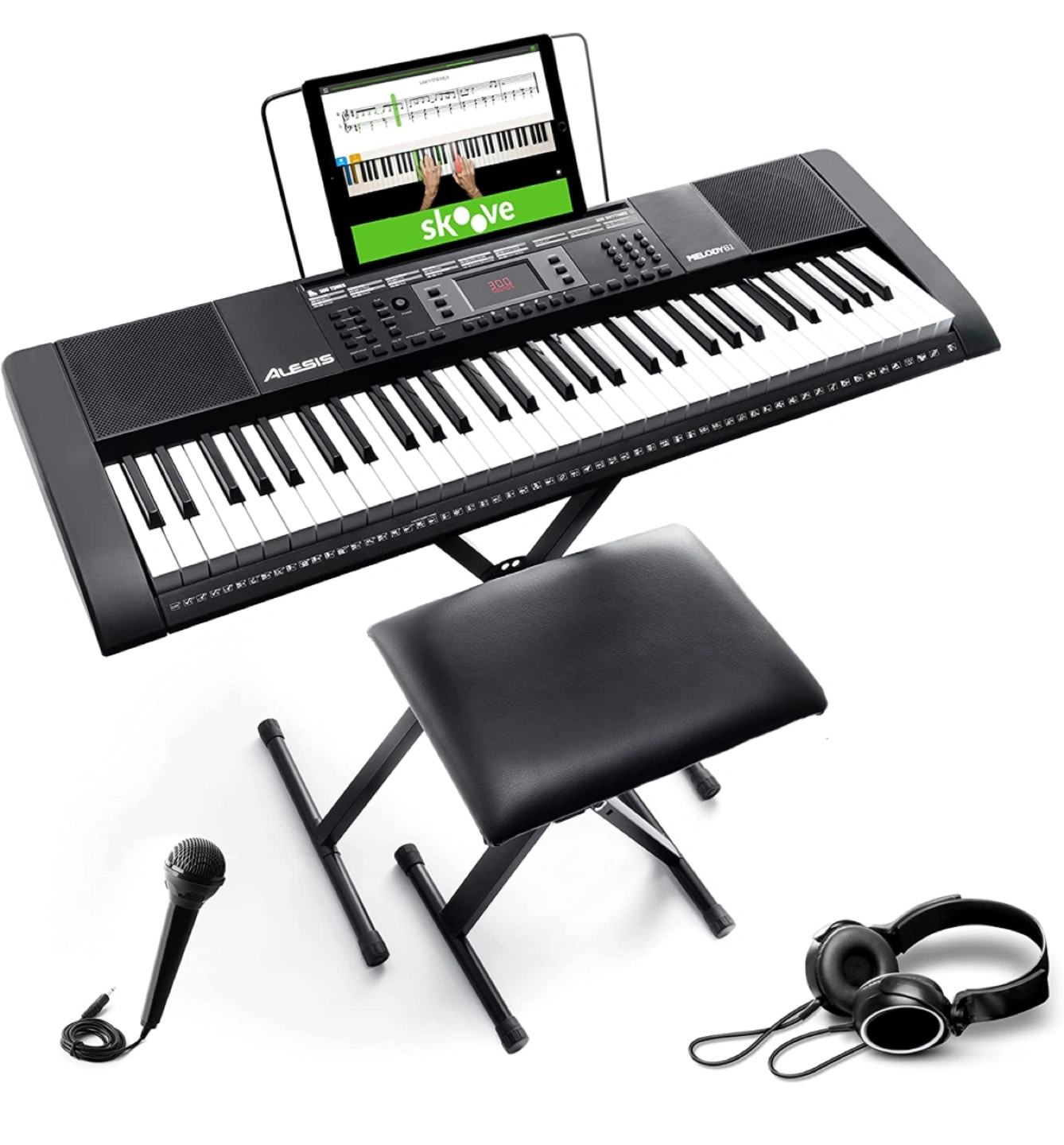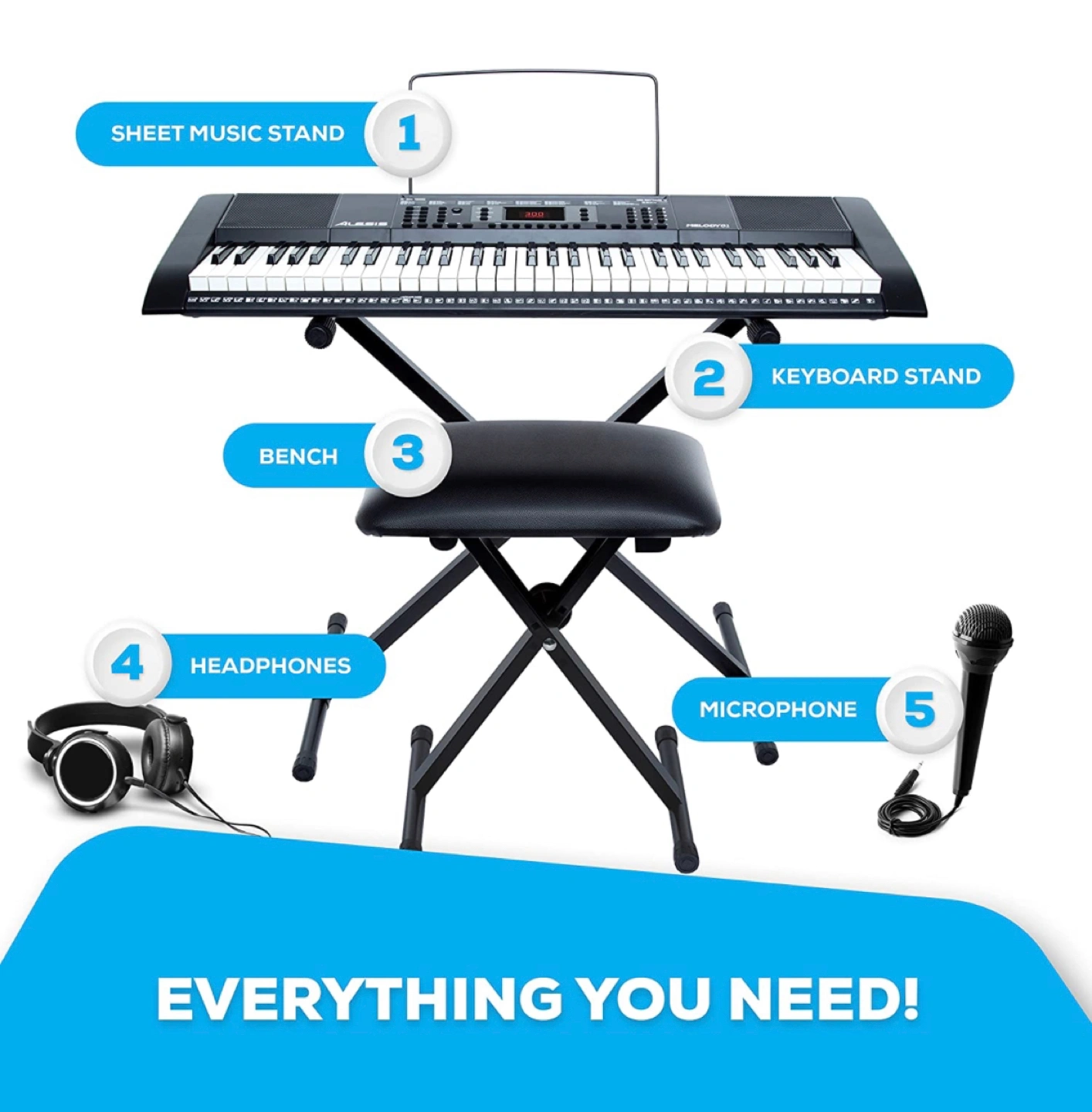 Alesis Melody 61 MKII - 61 Key Music Keyboard / Digital Piano with Built-In Speakers, Headphones, Microphone, Piano Stand, Music Rest and Stool