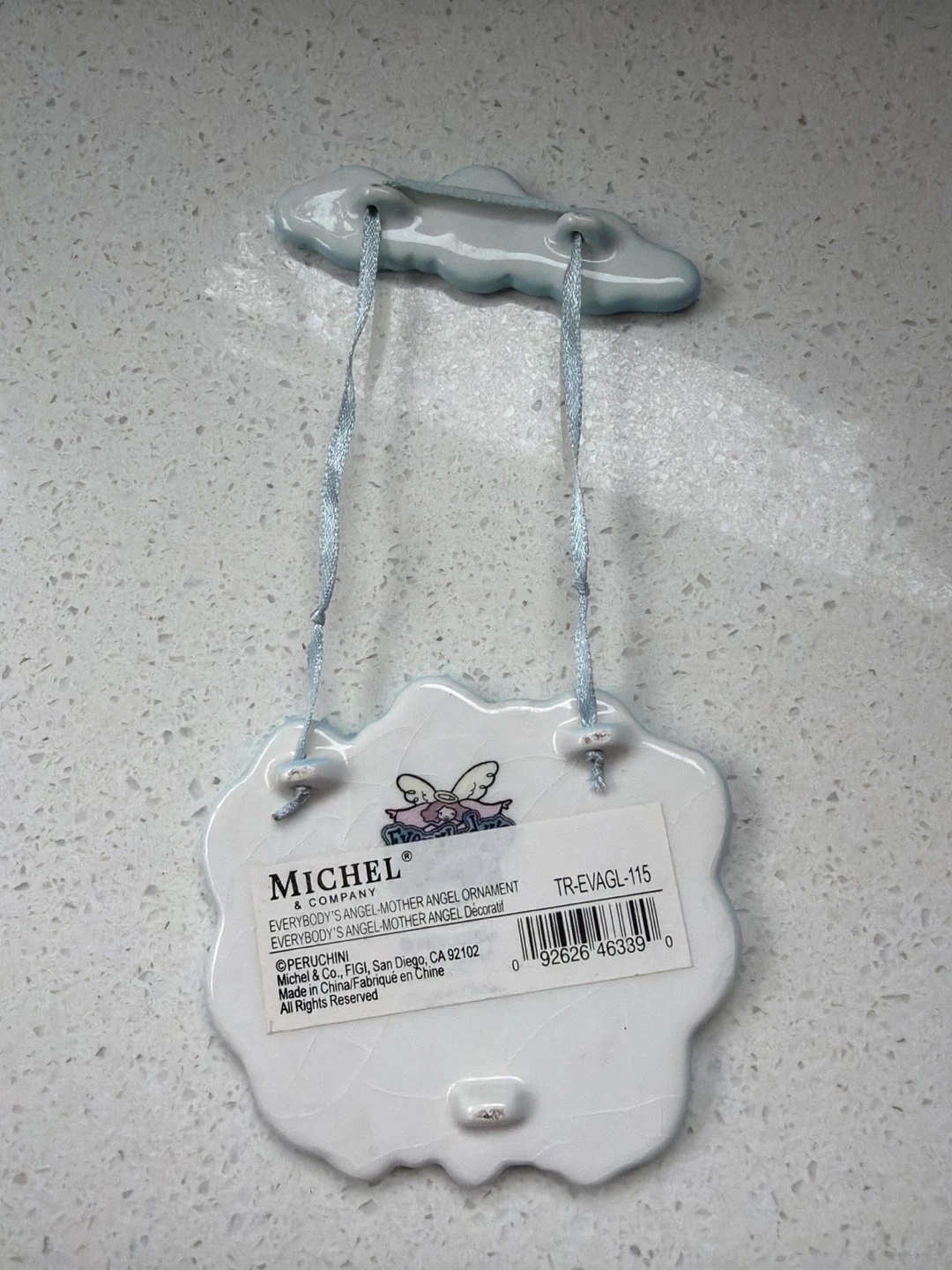 Michel Company Mother Angel ornament. Reads "Motherhood is such sweet joy with strength I've found anew. My prayer is for abundant love and patience in all I do." Made in China.