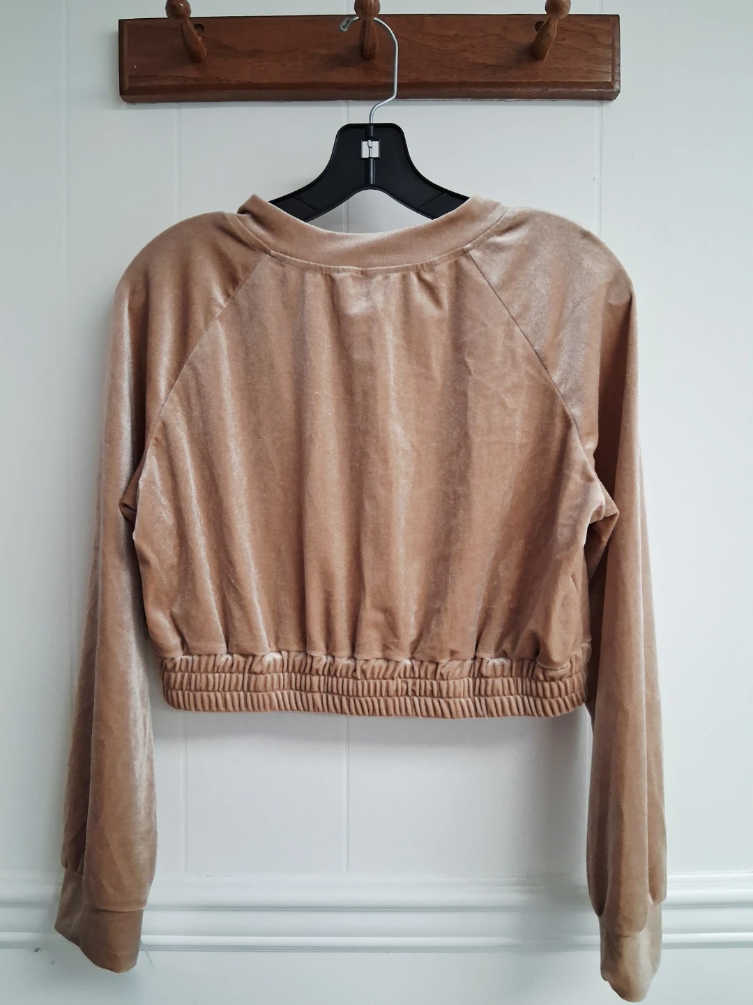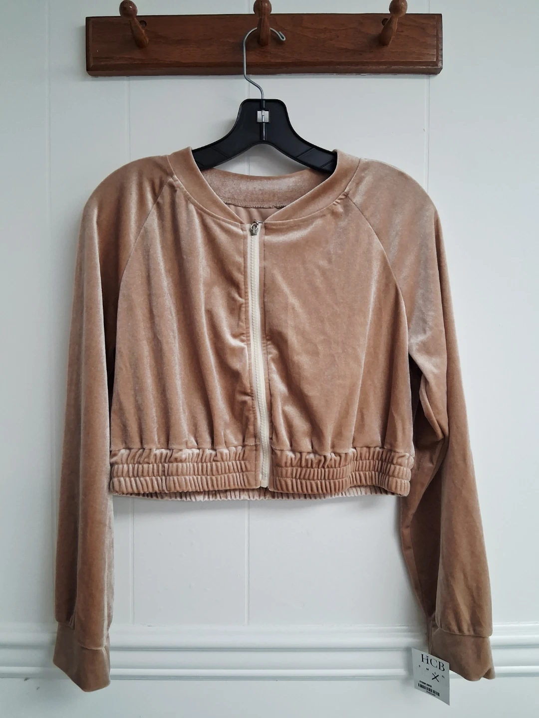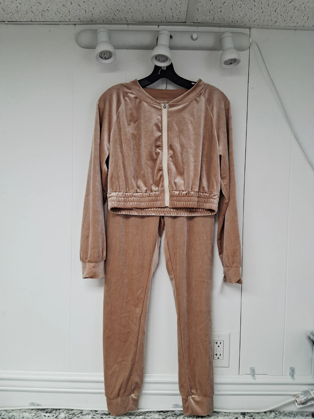 Beige Sweatsuit Set Zip Jacket & Elastic Waist Pants