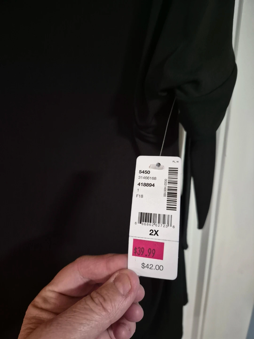 This is a black top from Penningtons. It's a size 2X. The material is soft and comfortable.