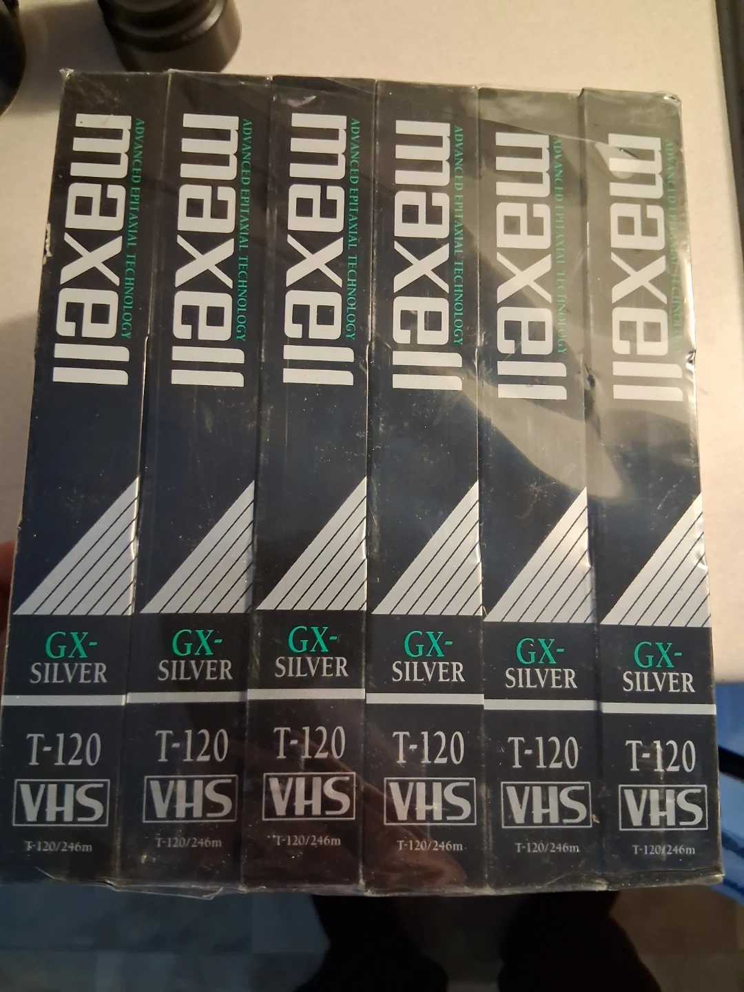 Selling a 6-pack of Maxell GX-Silver T-120 VHS tapes. These tapes offer high quality and superior sound and picture. They come with a full lifetime warranty. T-120 tape.