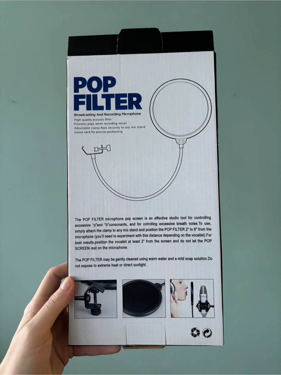 This Neewer pop filter is an effective studio tool for controlling excessive "s" and "b" consonants. It features a high quality acoustic filter and an adjustable clamp that fixes securely to any mic stand. The flexible goose neck allows for precise positioning.