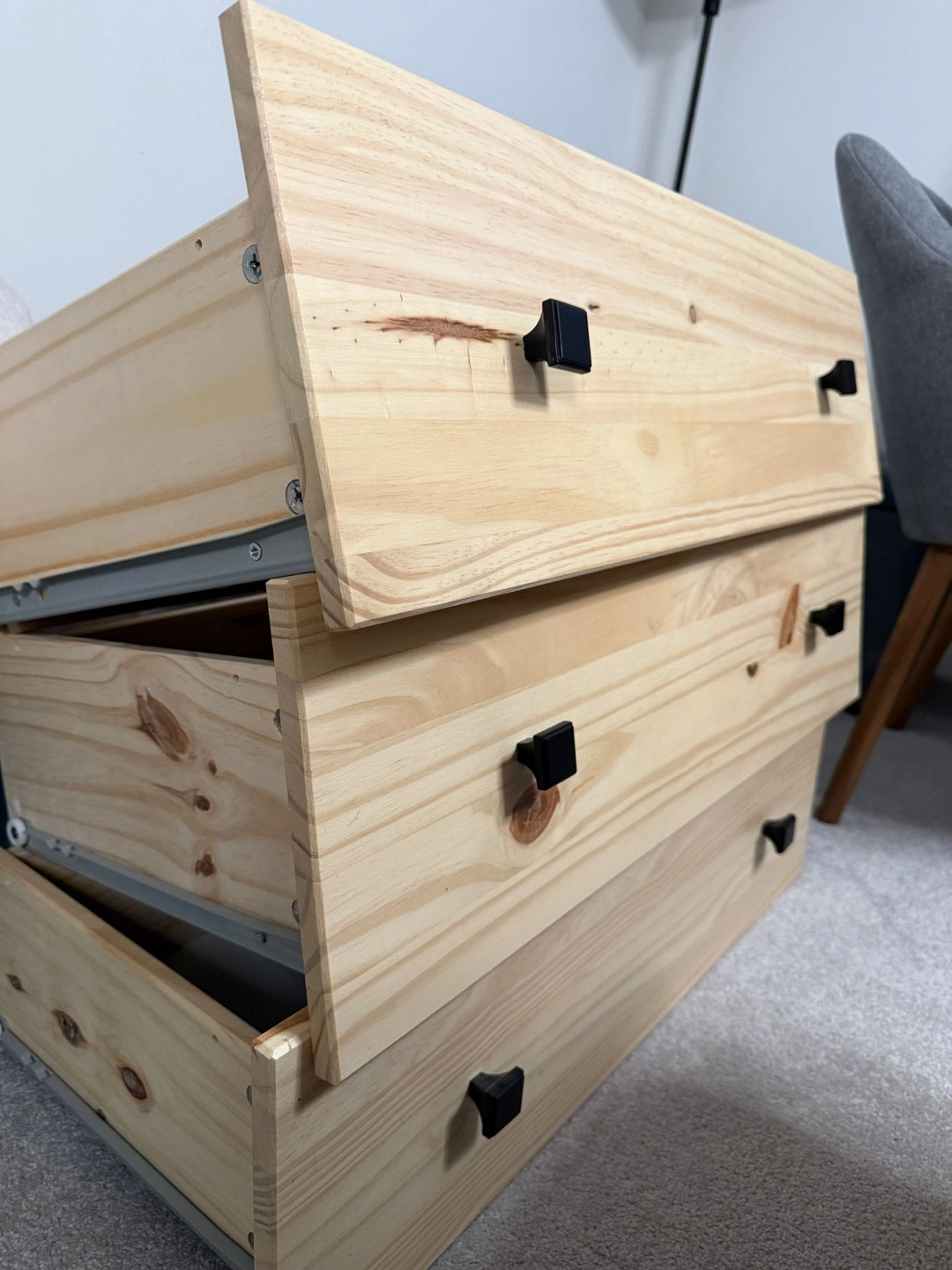 Tarva from IKEA (orig price 350). Replaced knobs for black stylish ones.