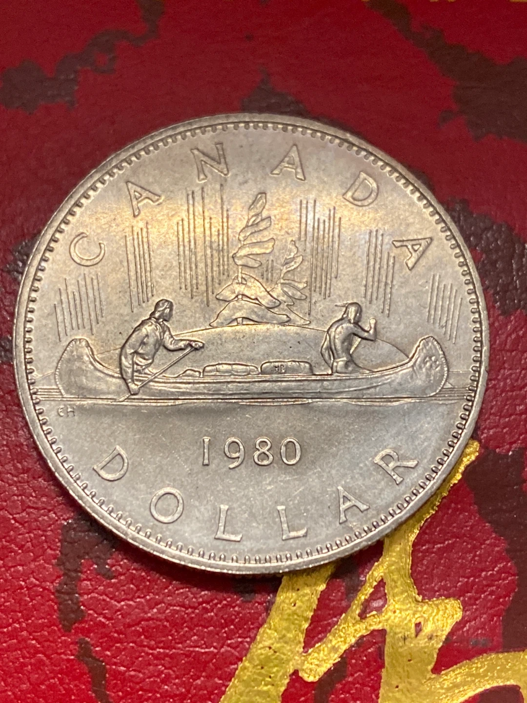 Canadian dollar coin featuring Queen Elizabeth II on the obverse and a canoe scene on the reverse. Dated 1980. A great piece of Canadian currency history!