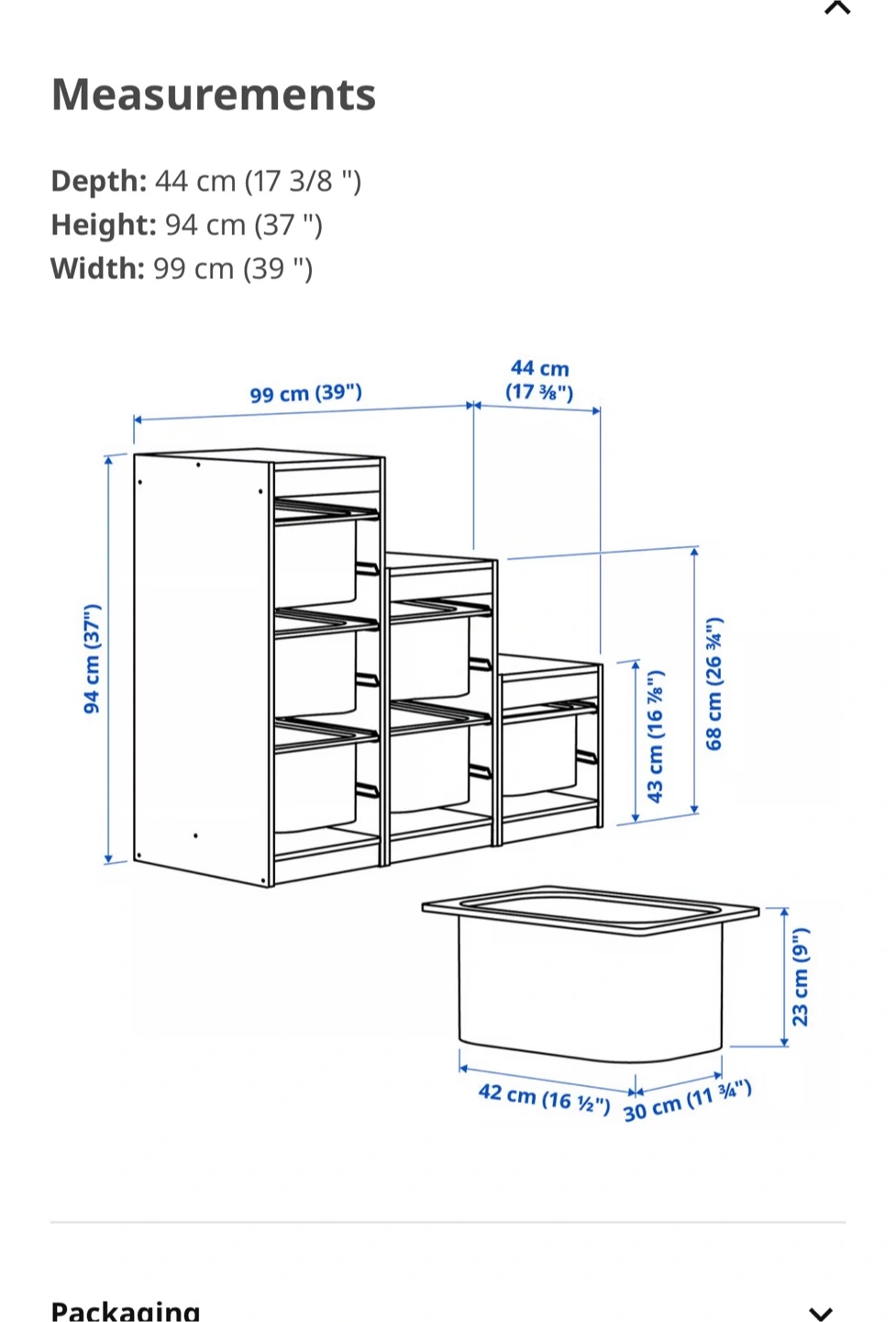 Looking to sell this IKEA Trofast storage combination. It's great for organizing toys or anything else you need to keep tidy! The dimensions are: