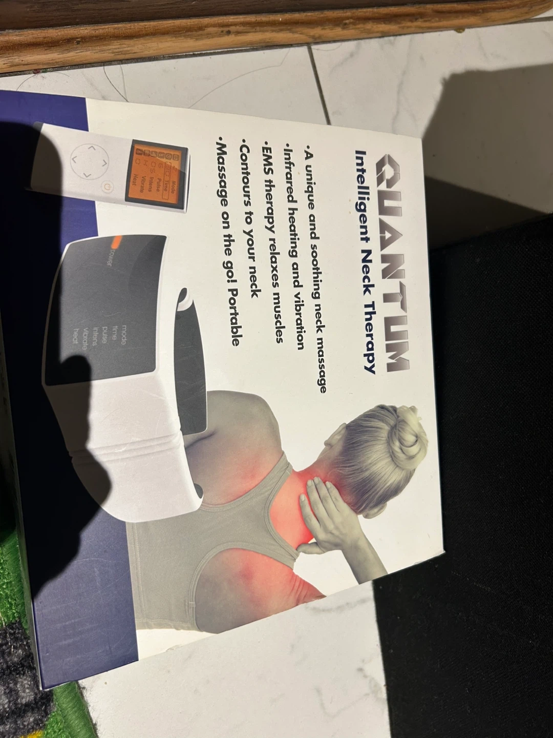 This is a Quantum Intelligent Neck Therapy device. It's designed for a unique and soothing neck massage. Infrared heating and vibration relax muscles and contours to your neck.