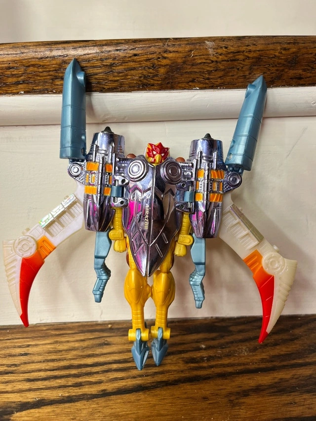 Awesome Transformers Beast Wars Transmetal Airazor figure. This one has cool chrome parts and bright yellow, blue, red colors. Good for collectors. Check out my other listings for more cool stuff!