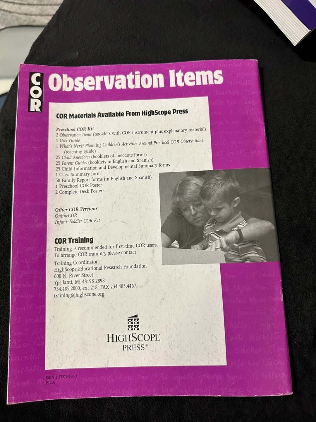 Preschool COR Kit. Includes booklets with anecdote forms. Observation items, teaching guide, parent information and developmental summary forms. English and Spanish versions available. Published by HighScope Press.