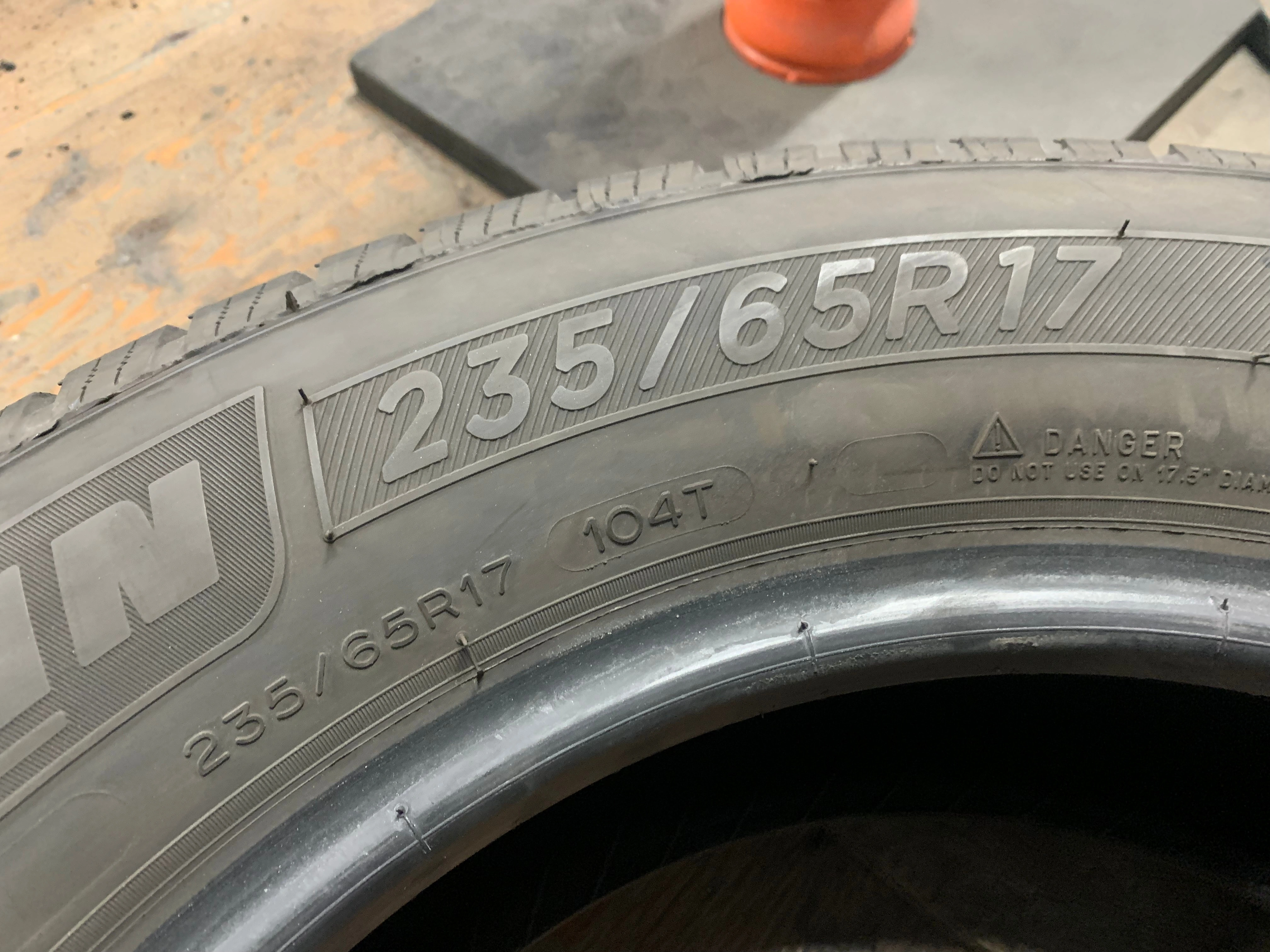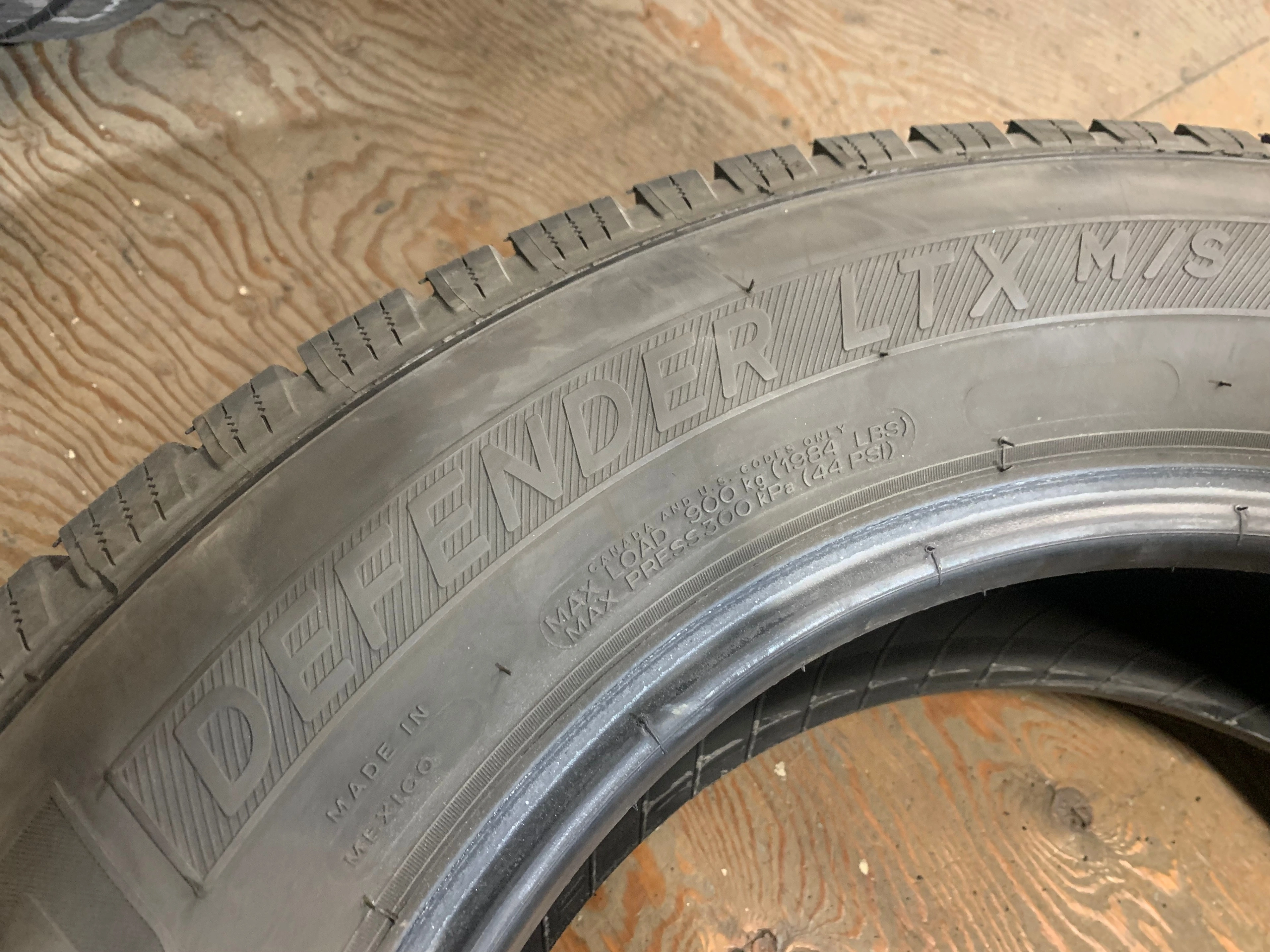 size 235/65/17 104T M+S Michelin Defender LTX M/S with no repairs and 80% tread