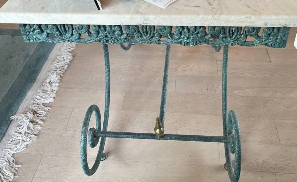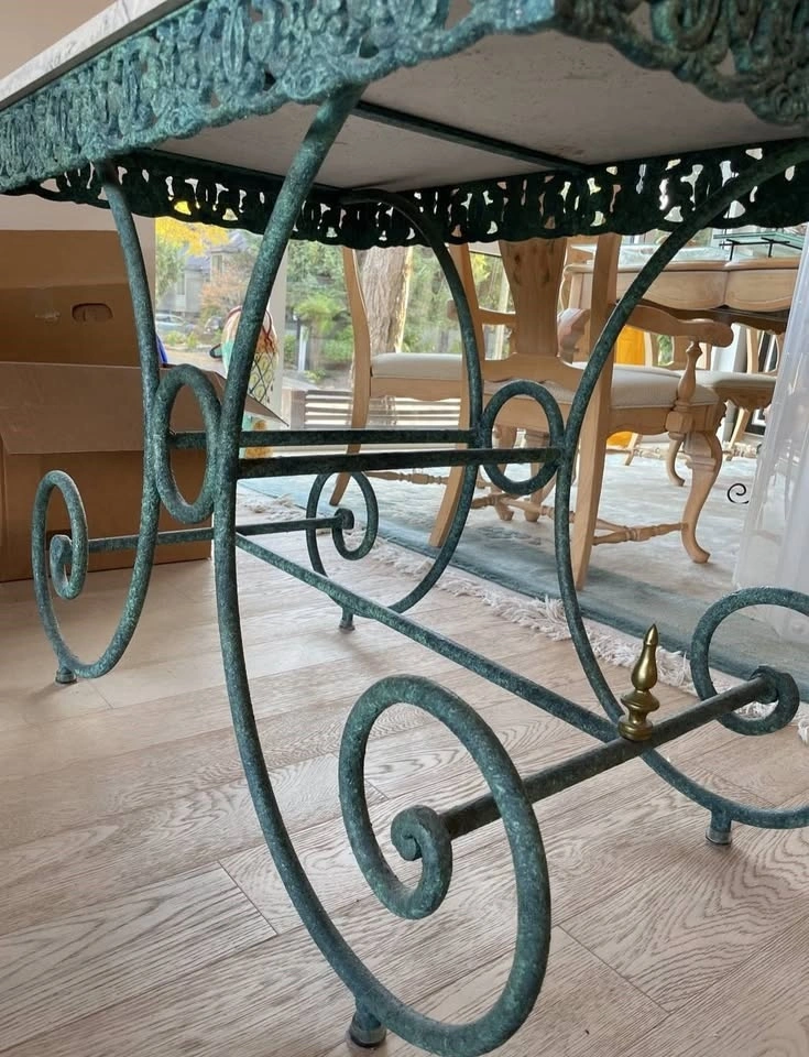 This beautiful table has a marble top, attractive design, and color. It looks great in any room. It can be used as a display table for photos and sculptures or as a desk. It also looks fantastic at the home's entry or in the hallway.
