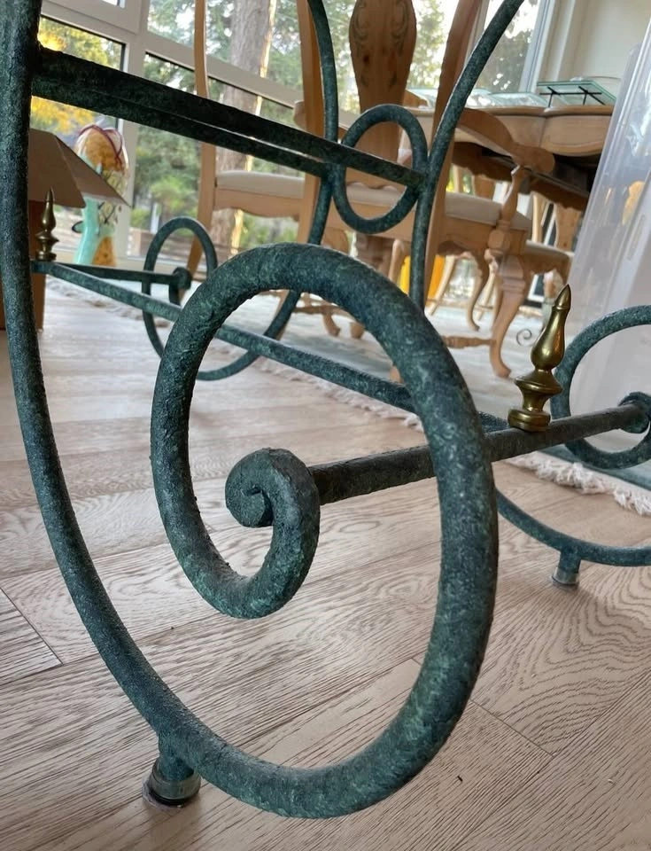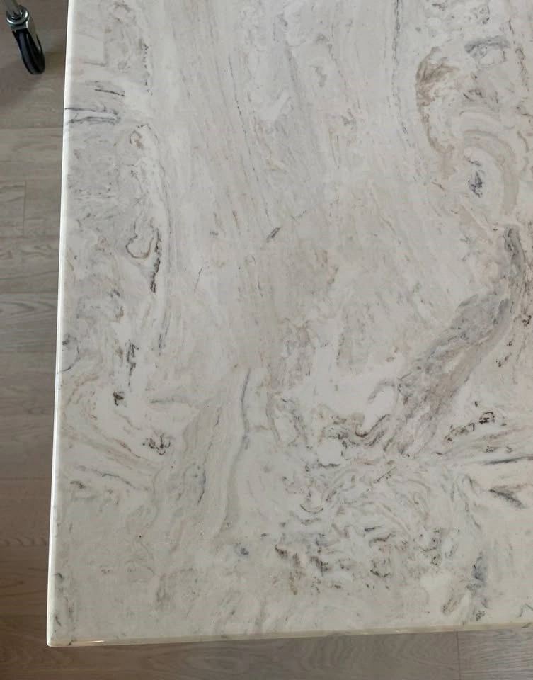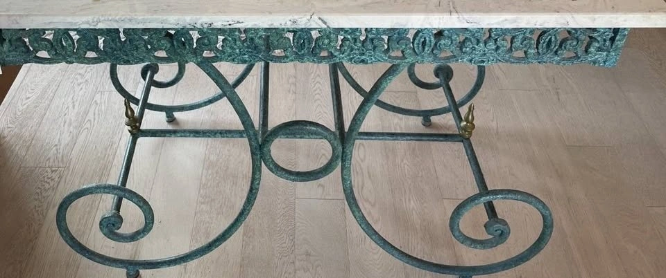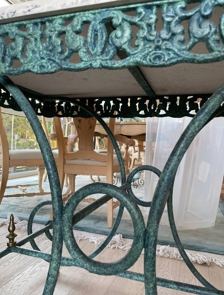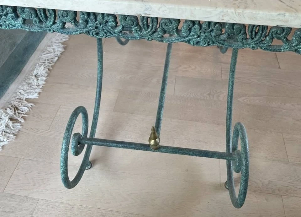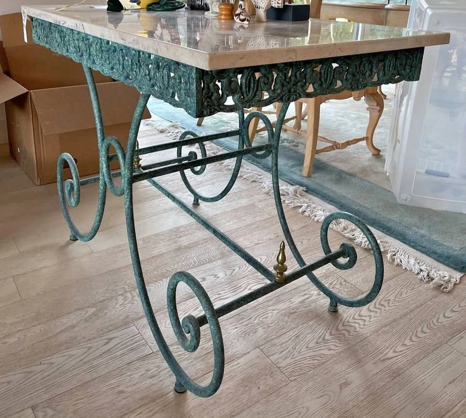 This beautiful table has a marble top, attractive design, and color. It looks great in any room. It can be used as a display table for photos and sculptures or as a desk. It also looks fantastic at the home's entry or in the hallway.