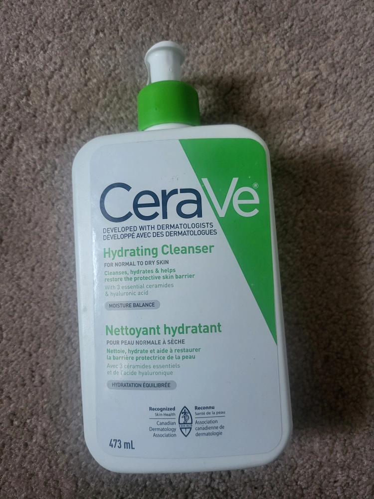 473 mL bottle of CeraVe Hydrating Cleanser for normal to dry skin. Only used a bit of it. It was gifted to me and I don't have any need for it.