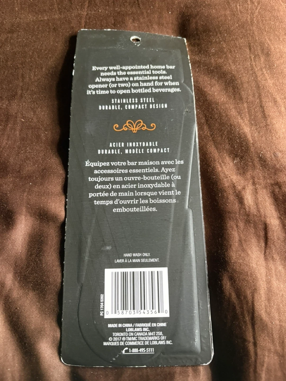 This bottle opener is made of stainless steel. It features a durable, compact design. Always have this essential tool on hand for bottled beverages!