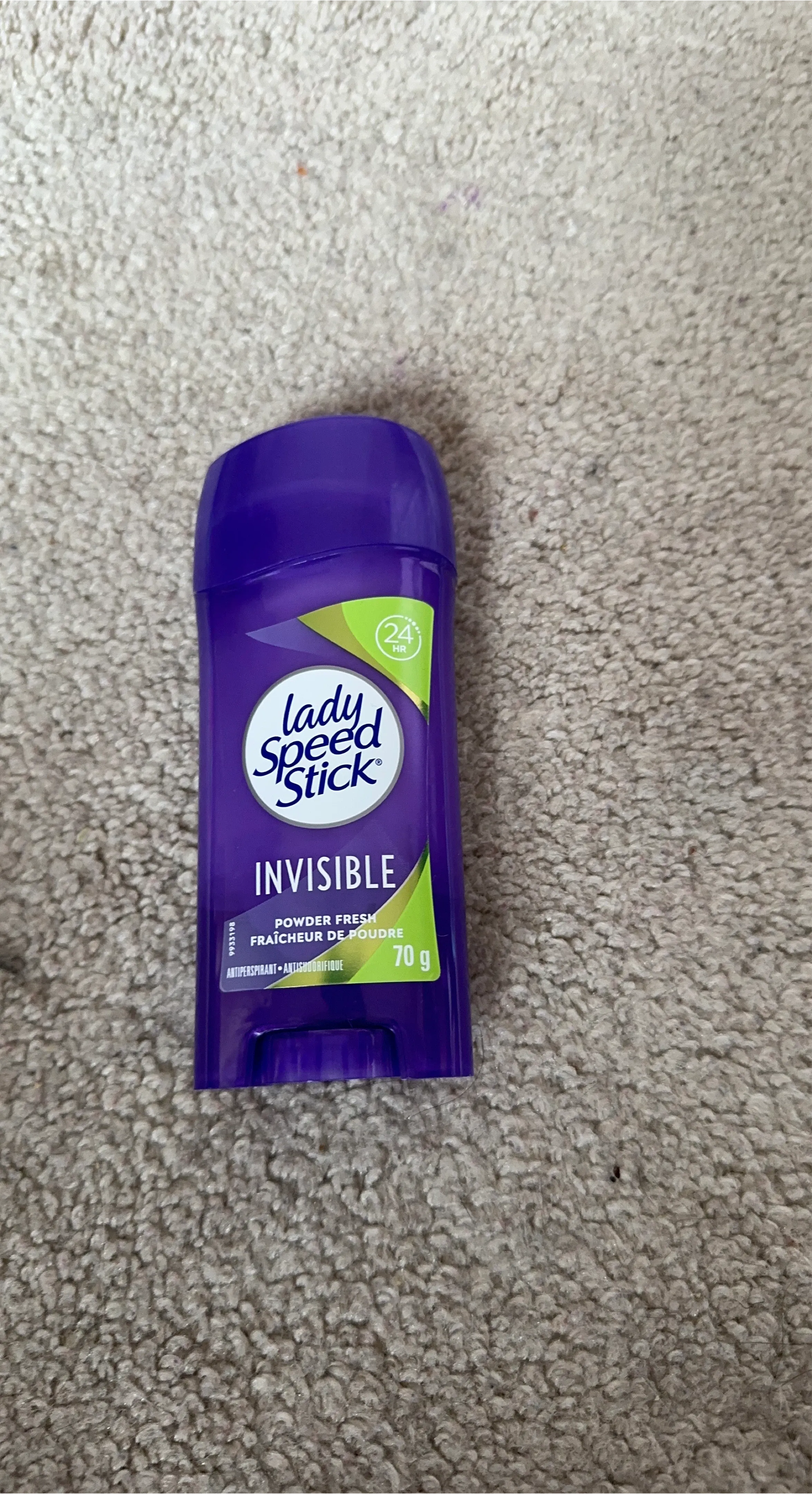 Buy & SellLady speed stick brand new!Lady speed stick brand new!$3This is Lady Speed Stick Invisible deodorant in Powder Fresh scent. It's an antiperspirant providing 24-hour protection.WHERE TO MEETCheck LocationView MapSELLERLilyChurchill Meadows291 review0 chats·1 favorites·4 viewsSEND CHAT TO SELLERHi Lily! I’m interested in your listing.Hi Lily! I’m interested in your listing.Get the Karrot app to chatSign In to chat