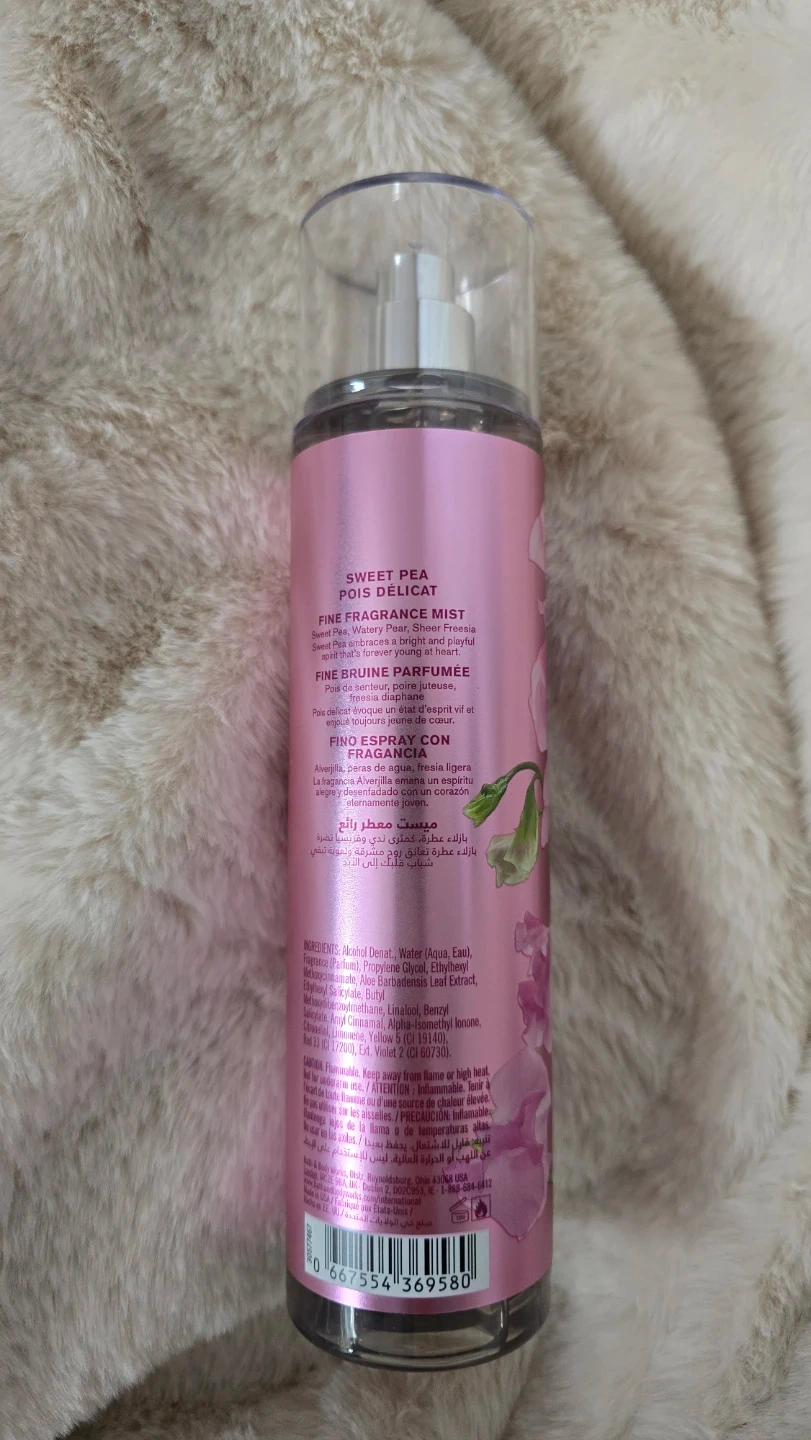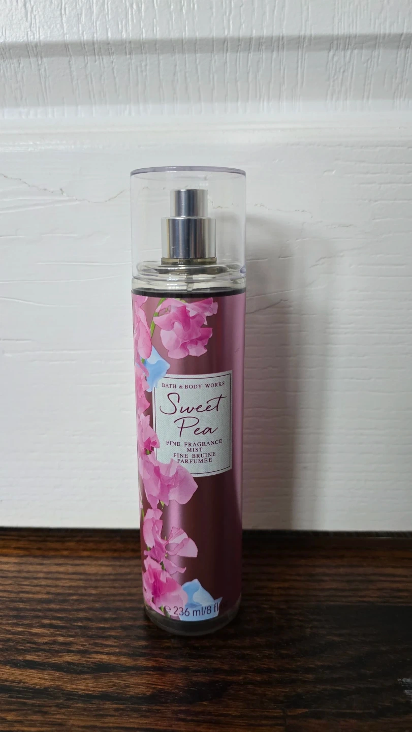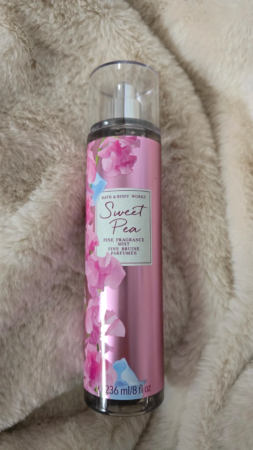 This is a Bath & Body Works Sweet Pea Fine Fragrance Mist. It's 236 ml or 8 fl oz. The mist is designed for a bright and playful scent.