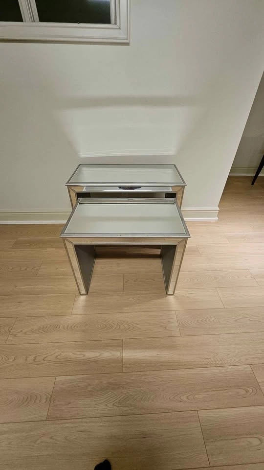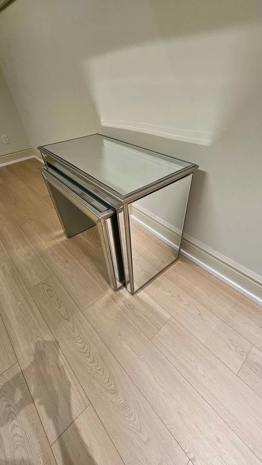 Buy & SellMirrored Nesting TableMirrored Nesting Table$130Size: Big 39" x 20.5" x 30" height Small 32" x 20" x 26" height Material: Wood & Mirror Color: Silver Condition: 7/10WHERE TO MEETCheck LocationView MapSELLERverifiediSell4UVaughan913 reviews1 chats·2 favorites·56 viewsSEND CHAT TO SELLERHi iSell4U! I’m interested in your listing.Hi iSell4U! I’m interested in your listing.Get the Karrot app to chatSign In to chat