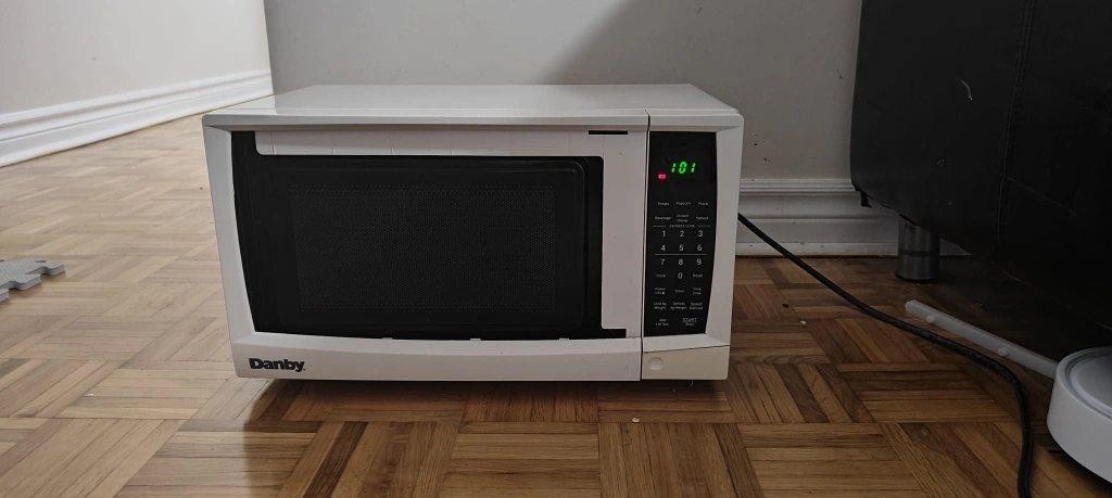 Selling a Danby microwave in white. It's in good working condition and ready for a new home. Perfect for small kitchens or apartments!