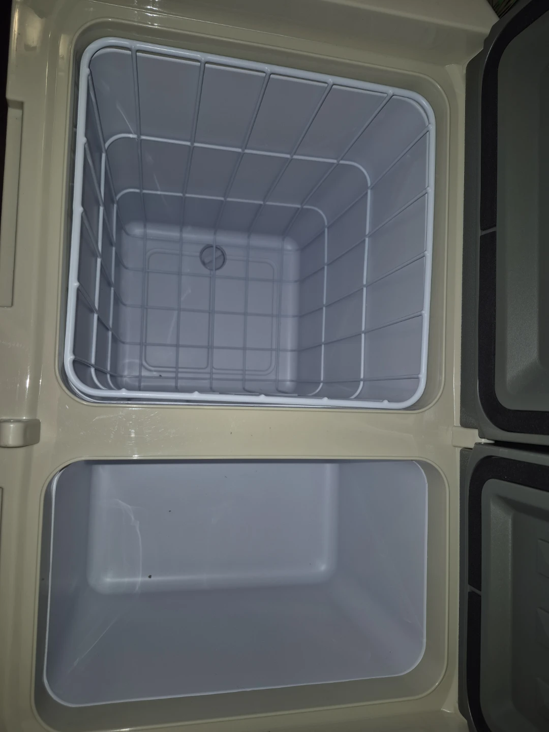 Brand new Portable cooler/ fridge with digital control panel in a box. Dual compartment design with a wire rack in the top section. It's great for road trips or outdoor adventures.