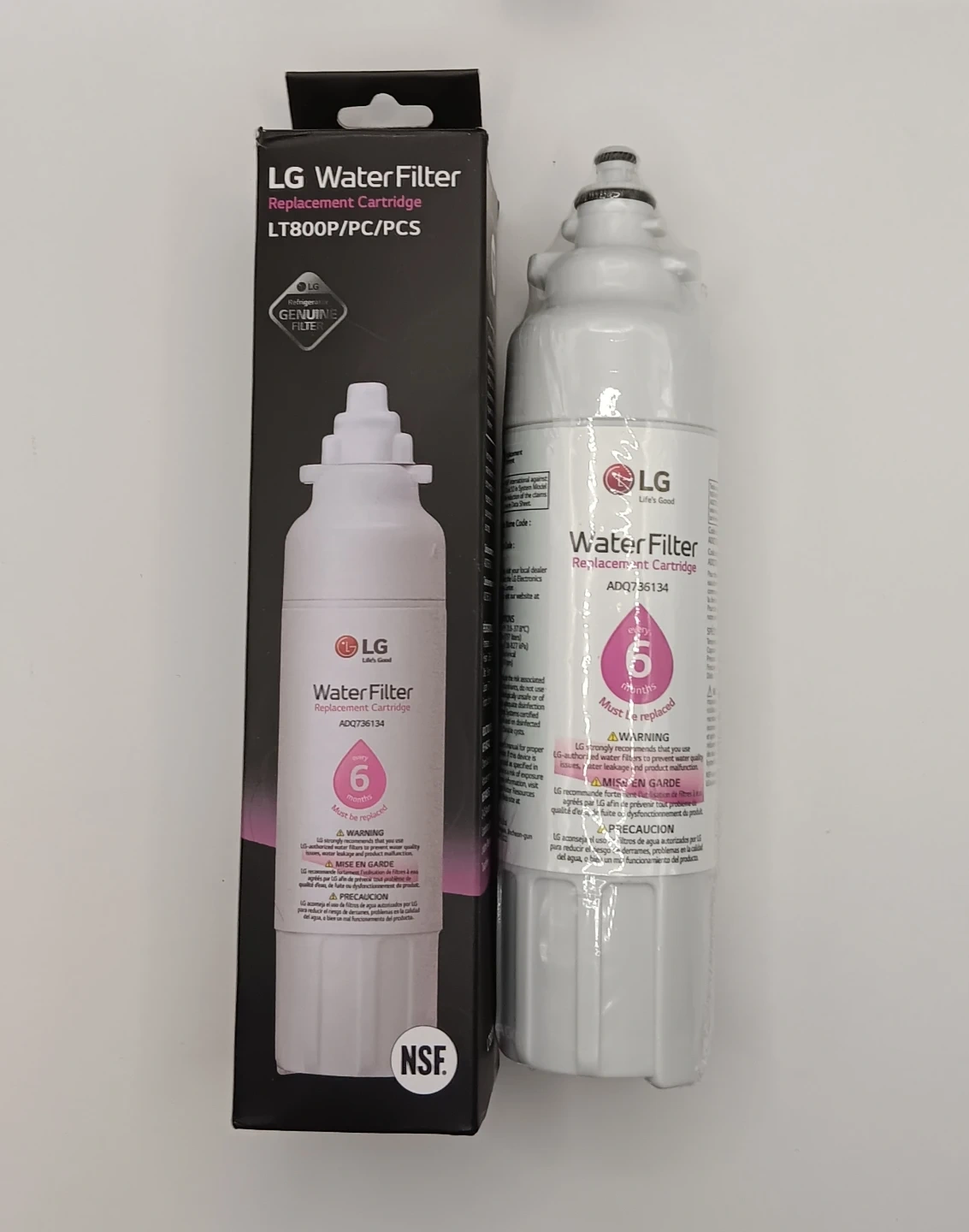 This is an LG water filter replacement cartridge for LT800P/PC/PCS models. It's designed to be replaced every 6 months to ensure optimal water quality. The filter is NSF certified.