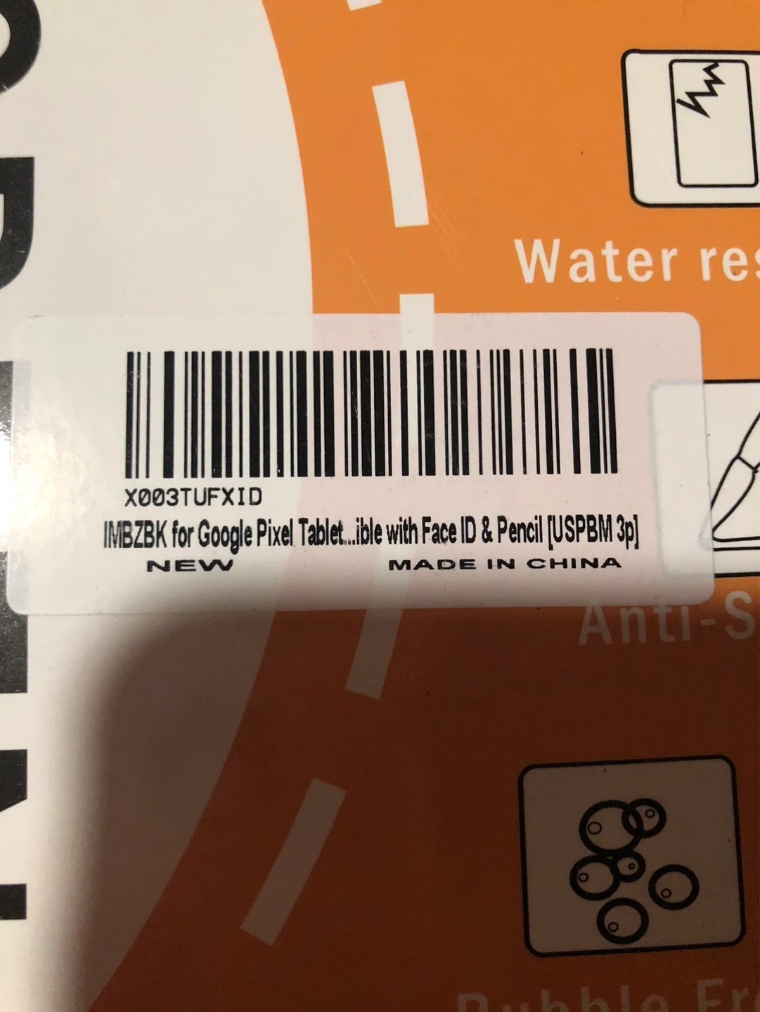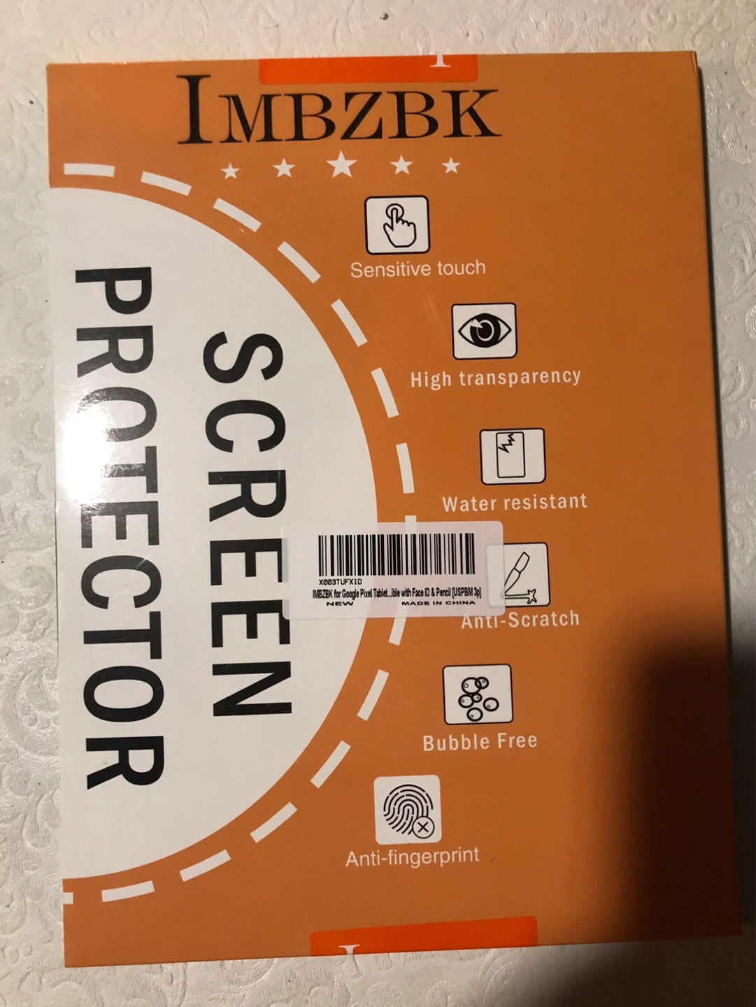 This is an IMBZBK screen protector for the Google Pixel Tablet. It's designed for use with Face ID and Pencil. The protector offers sensitive touch, high transparency, and is water resistant, anti-scratch, and anti-fingerprint. It's bubble free for easy application.