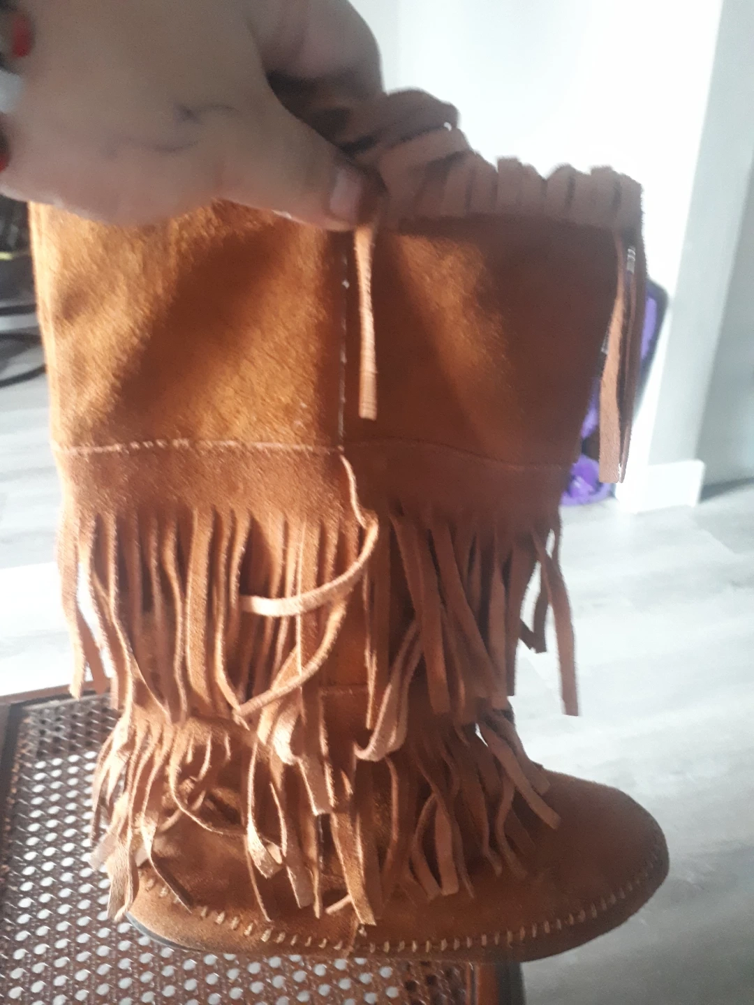 Buy & SellBrown Suede Fringe BootsBrown Suede Fringe Boots$30Brown suede mid-calf boots. Features layered fringe detailing. Good for fall and winter. Size not specified. never warnConditionNewSize8WHERE TO MEETmc couleyView MapSELLERjonMc Cauley171 review0 chats·1 favorites·12 viewsSEND CHAT TO SELLERHi jon! I’m interested in your listing.Hi jon! I’m interested in your listing.Get the Karrot app to chatSign In to chat