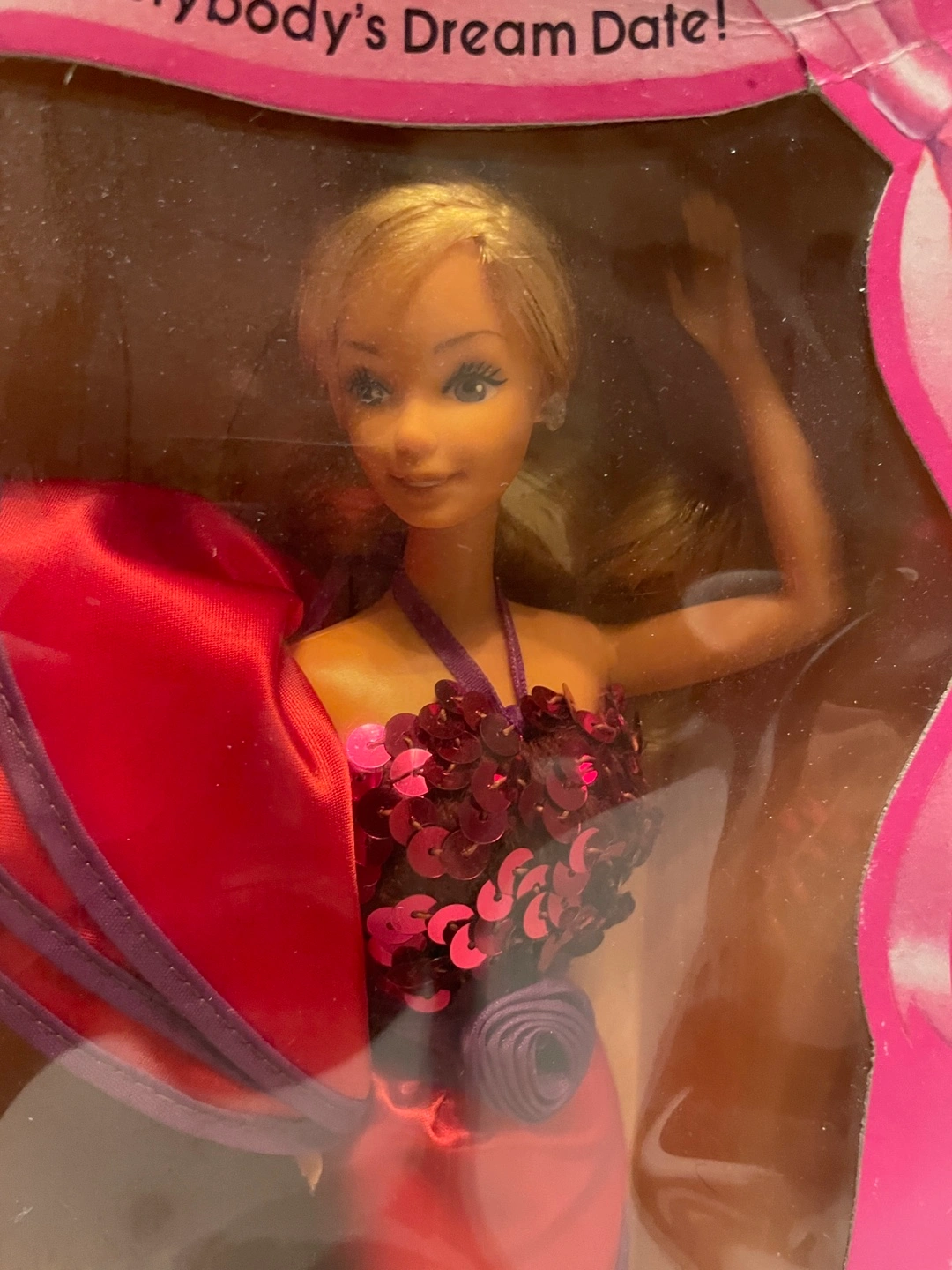 Vintage Barbie doll with a red gown. Box features a picture of a Barbie and Ken doll. A great gift for any collector, the contents are sure to bring a smile to your face.