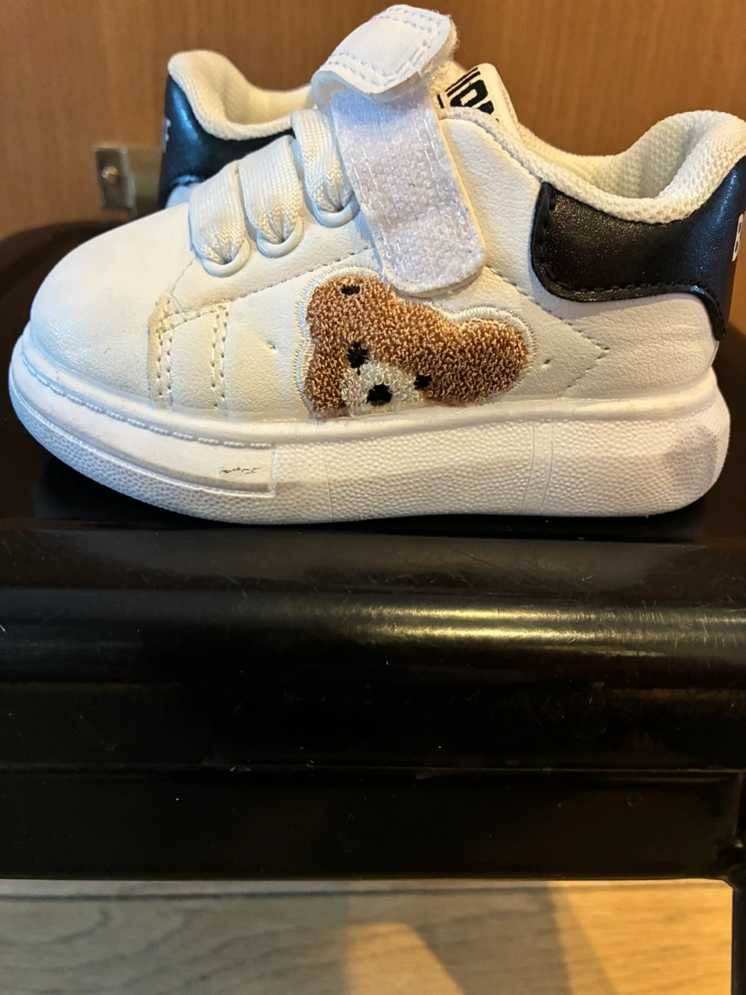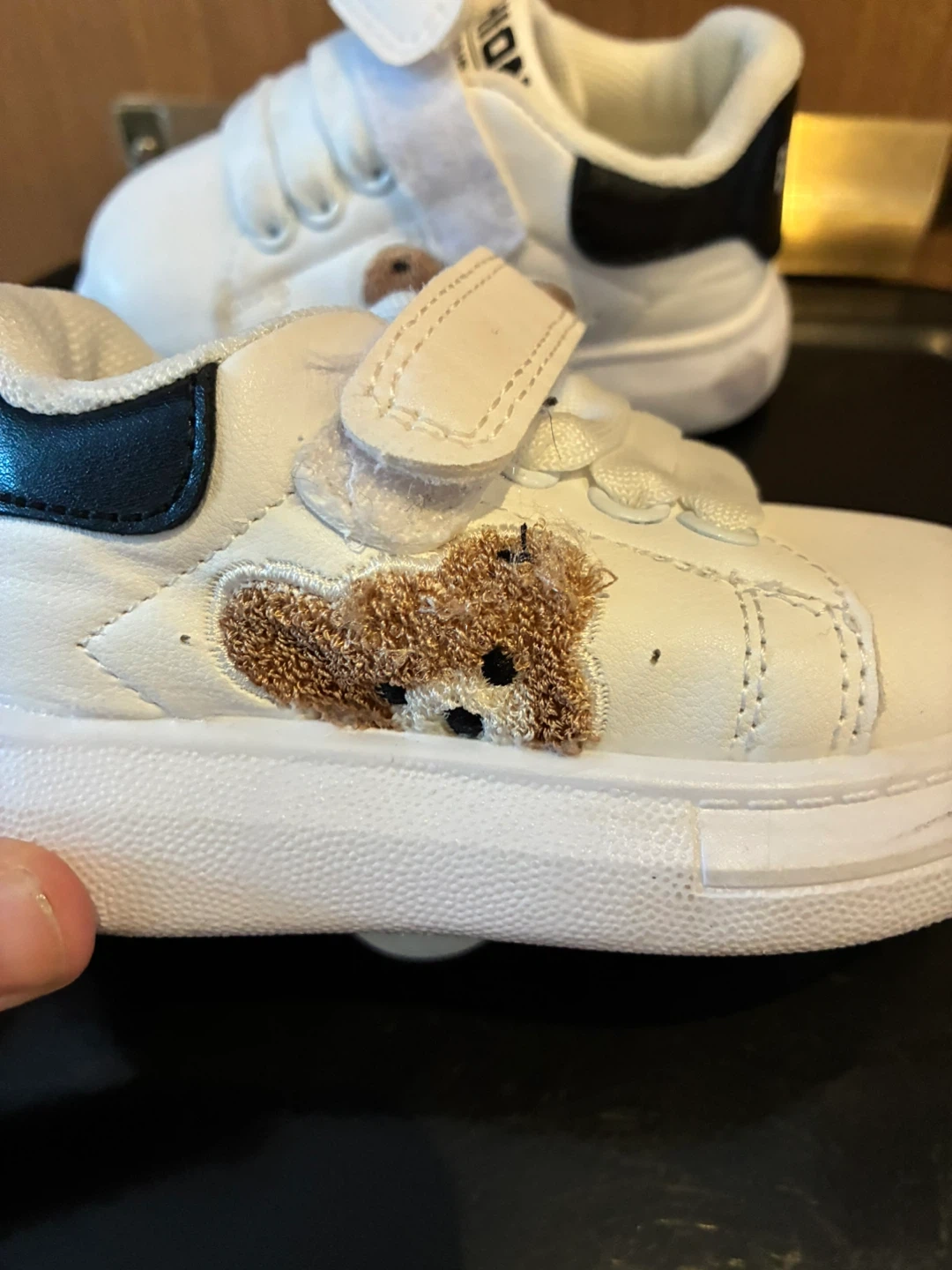 Adorable kids' sneakers featuring a cute bear design. Perfect for every day. Super cute and super comfortable.