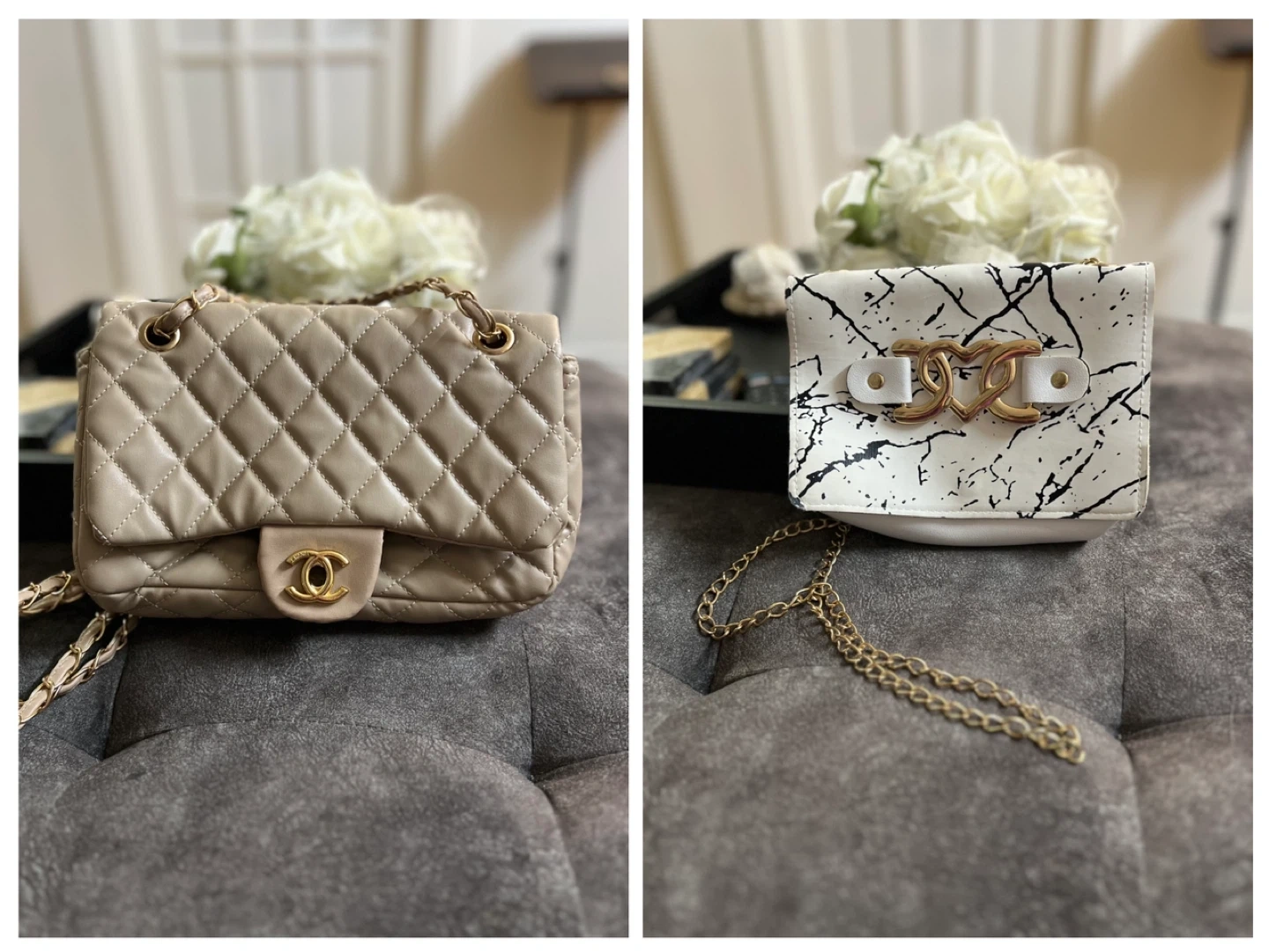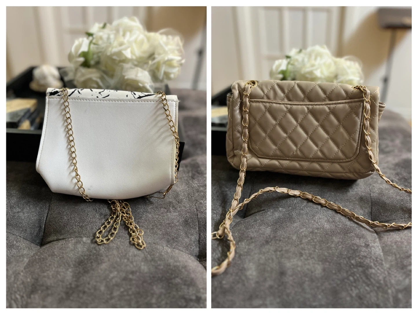 🏆Stylish quilted shoulder bag with a gold chain strap. It has a secure closure and an interior pocket for essentials. This bag is perfect for a night out or special occasion!