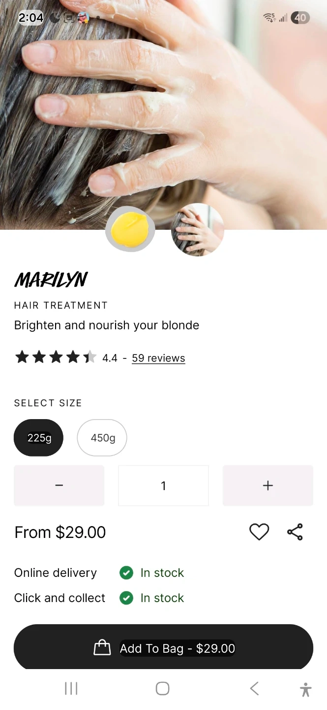 Marilyn hair treatment brightens and nourishes blonde hair. It's a light, lemony treatment with lemon and chamomile to brighten hair and linseed gel and extra virgin olive oil for shine and softness. Made in Canada!