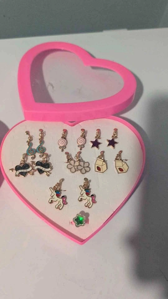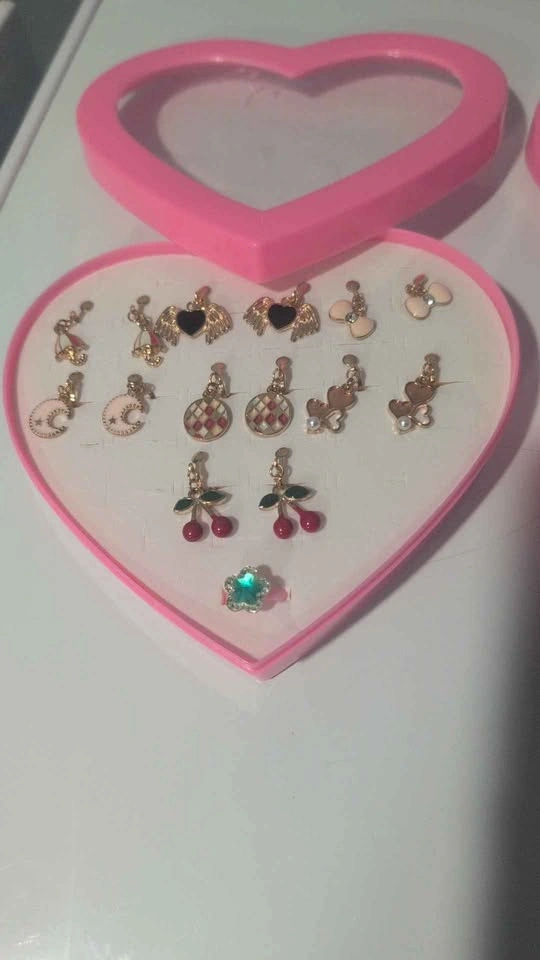 Each heart-shaped box includes 7 pairs of adorable earrings and a cute ring, perfect for girls, teens, or anyone who loves fun accessories.