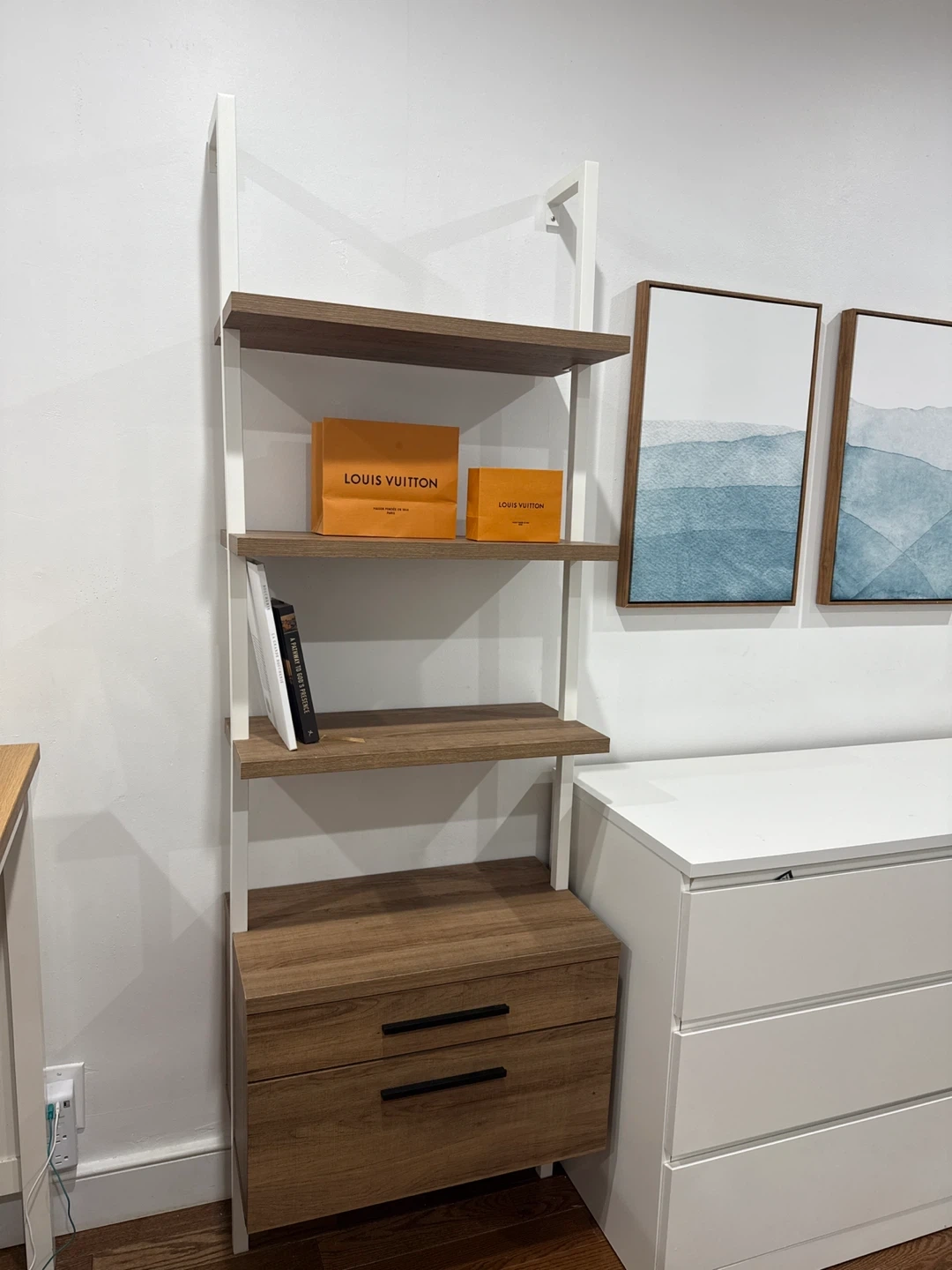 Ladder Bookshelf with 2 Drawers