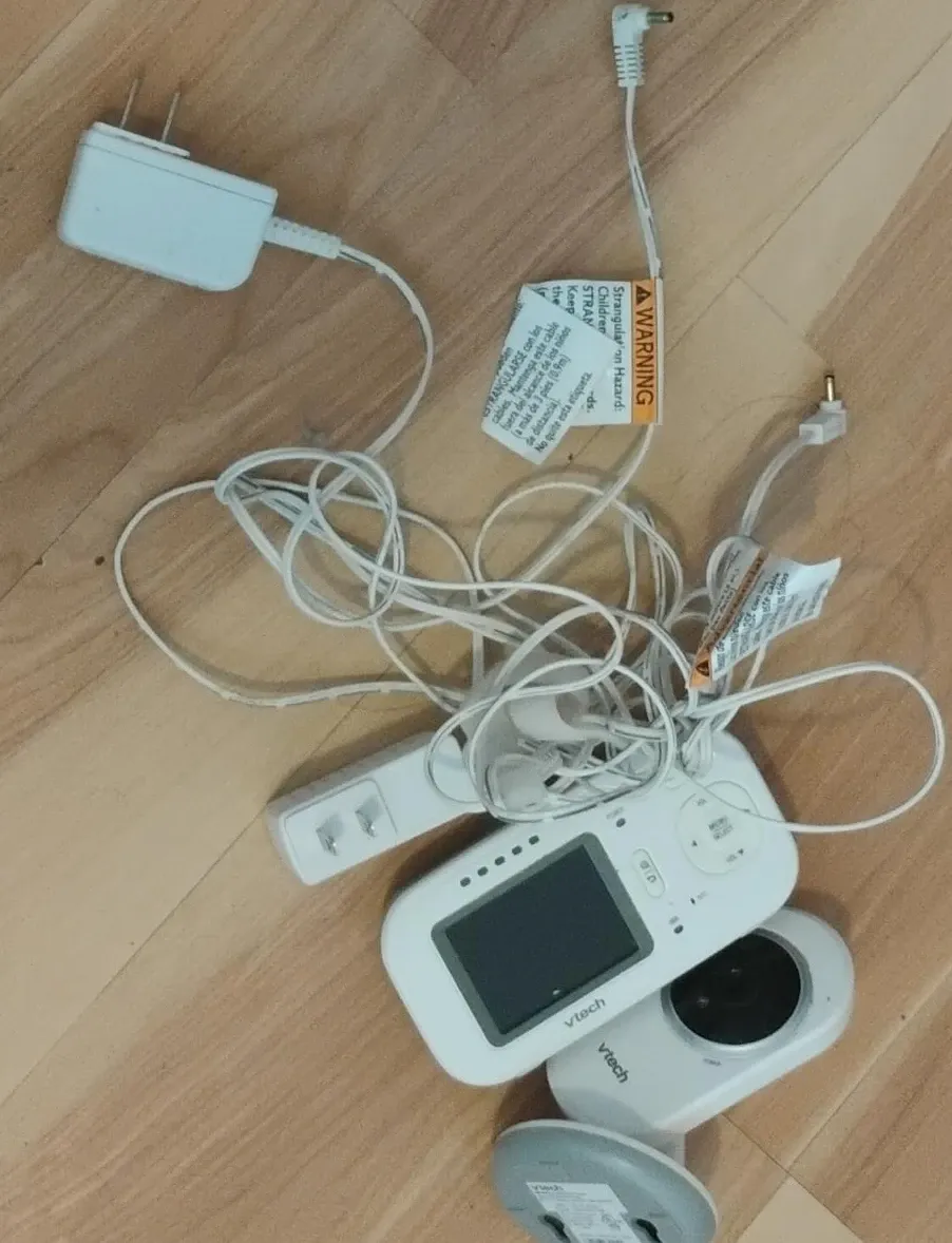 Selling a VTech baby monitor. Includes the camera and monitor, plus all the necessary cords. Keep an eye on your little one with this handy device!