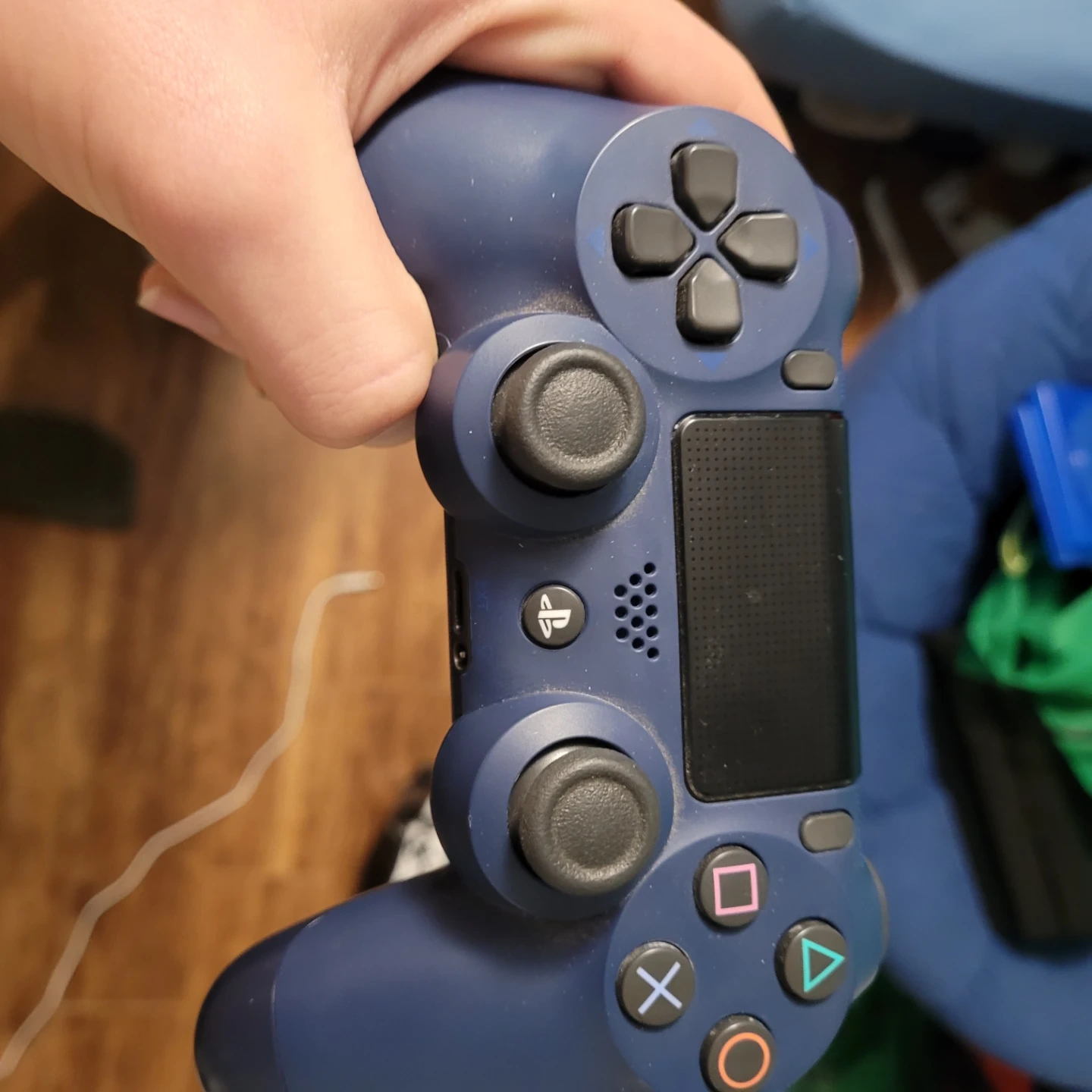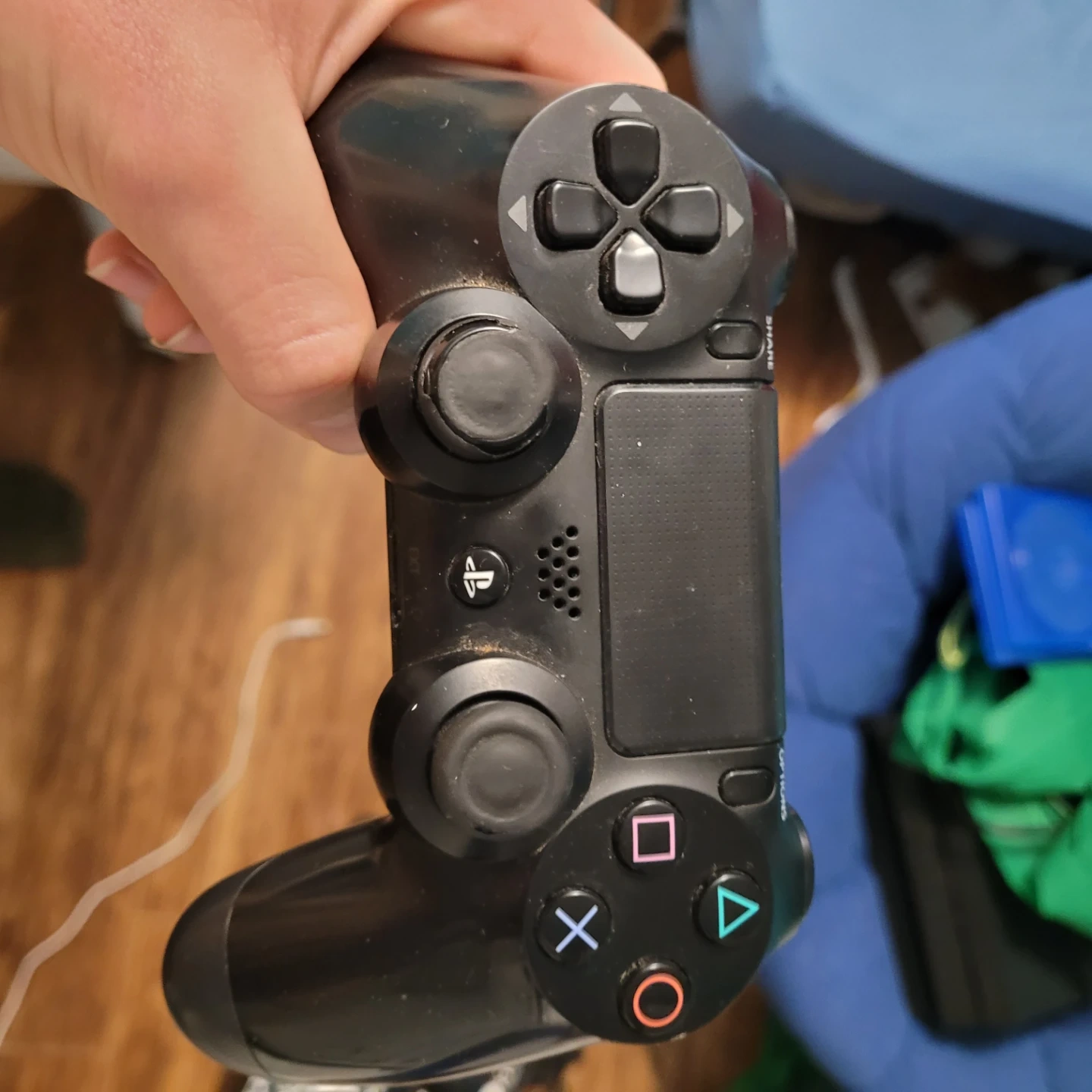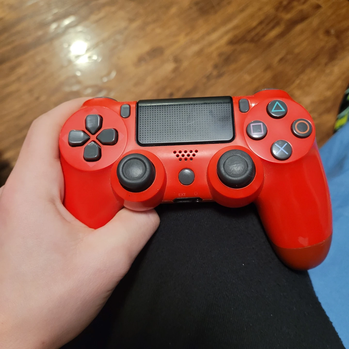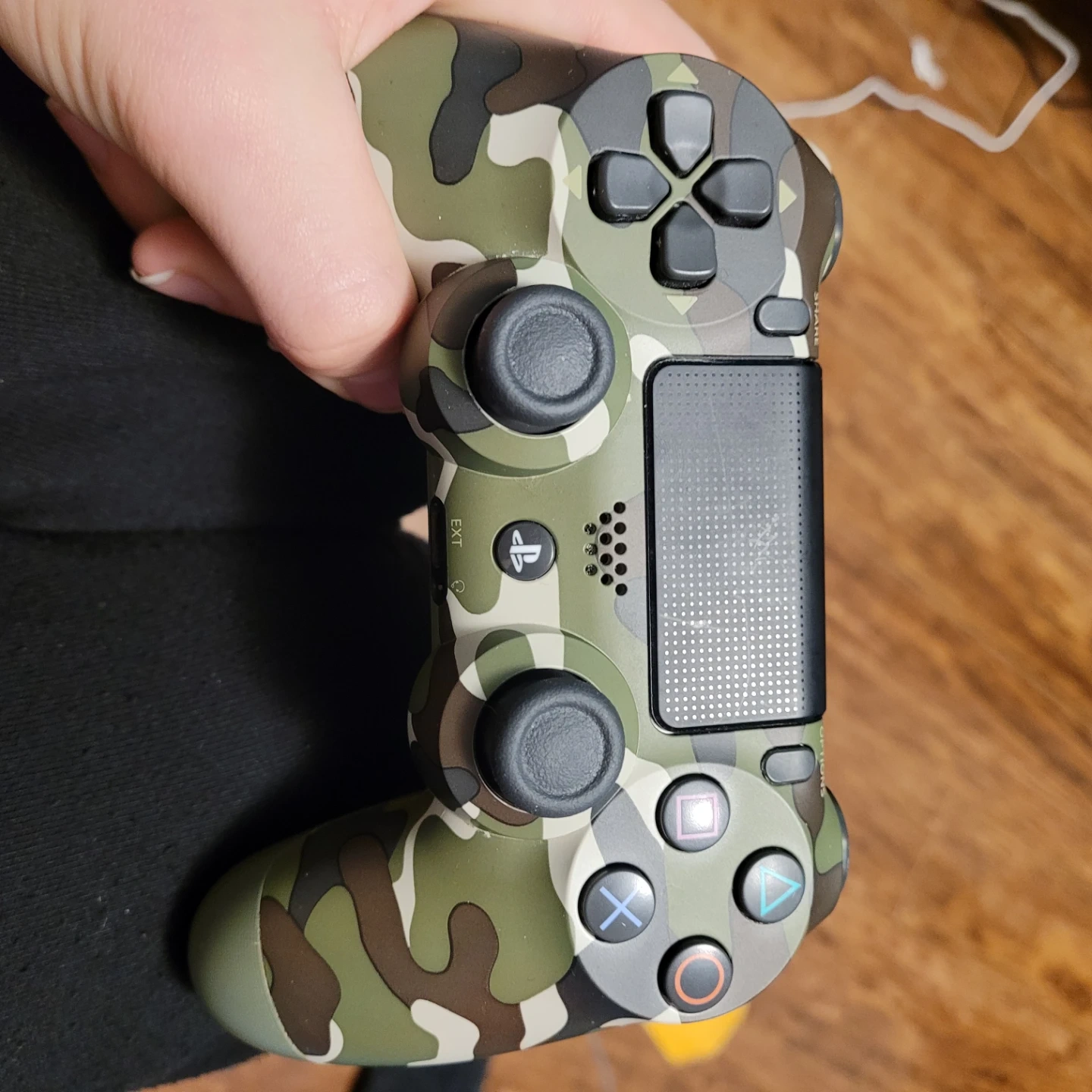 Selling used PlayStation 4 Dualshock controllers. Available in various colours including black, red, blue, and camouflage. Condition varies. Perfect for gaming!